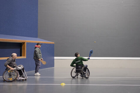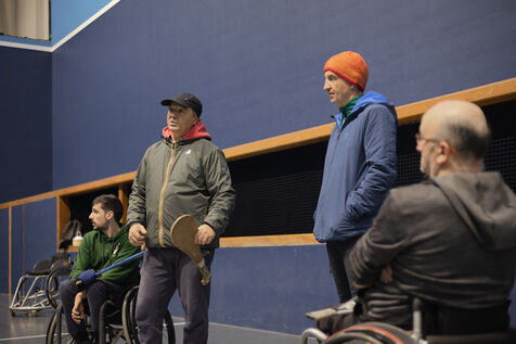oldy… A small village in the Basque Country, more than an hour from the big cities on the coast and, what’s more, away from the main roads. On this Tuesday afternoon in December, the village, which has about 550 inhabitants, is deserted. Just a few cars in front of the Hoxari trinquet, some of them displaying a card with the handicap logo. Tuesday is training day. At the wall on the left of the village, a handful of people meet around 3pm for a two-hour session: first, a warm-up, then speed and agility exercises and finally, a game.