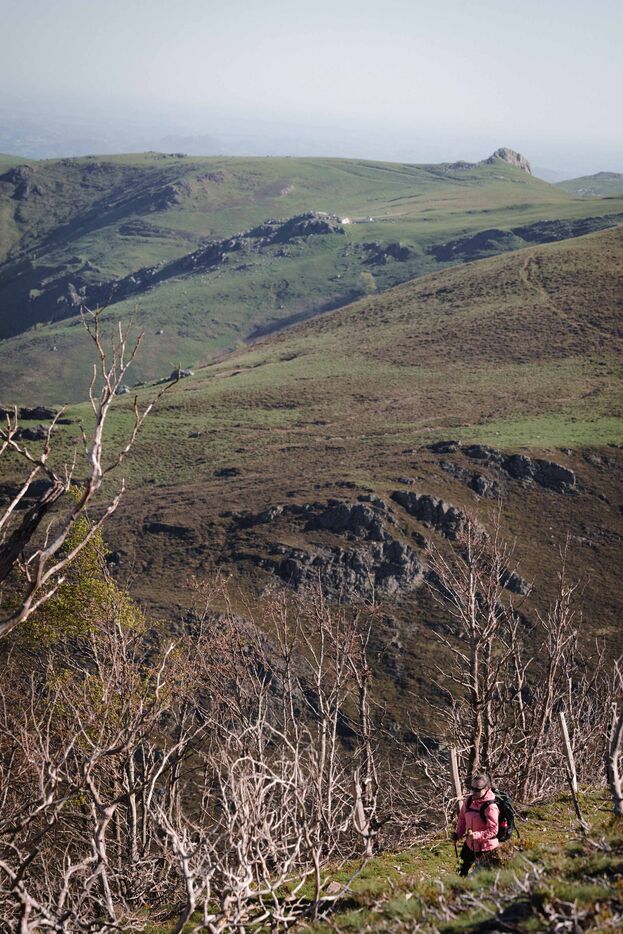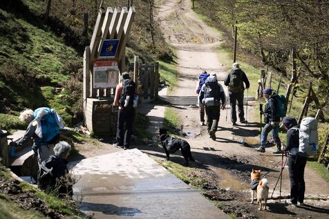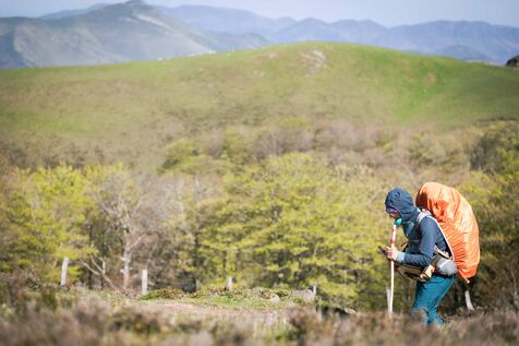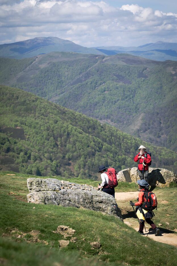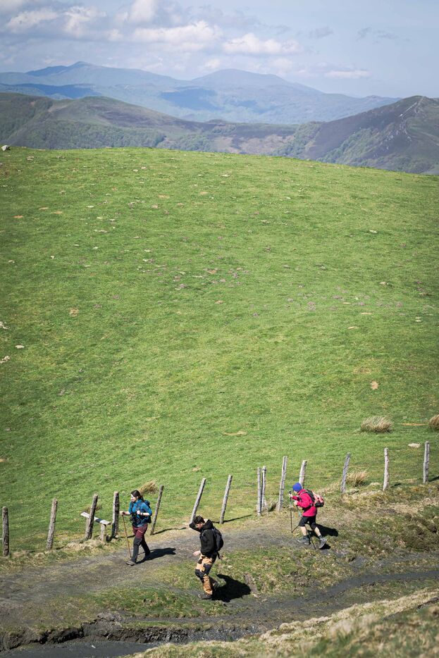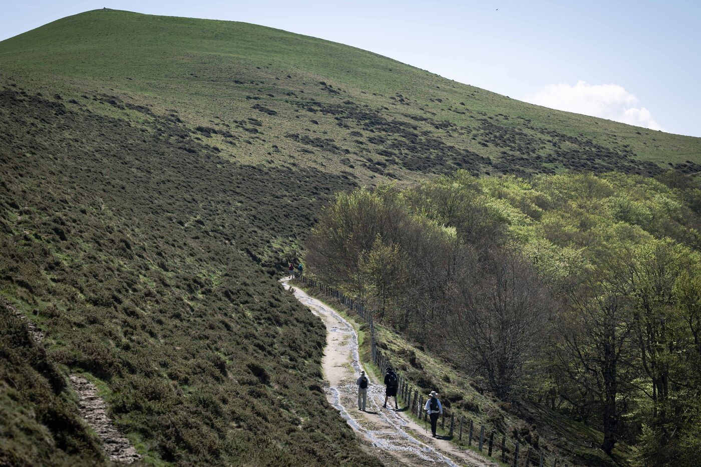 Une fois parvenus à la Croix Thibault, au-dessus de Saint Jean Pied de Port, les pèlerins en route vers Saint Jacques de Compostelle quittent la petite route de montagne pour emprunter le sentier qui leur permettra de traverser la montagne, mais aussi la frontière franco-espagnole.