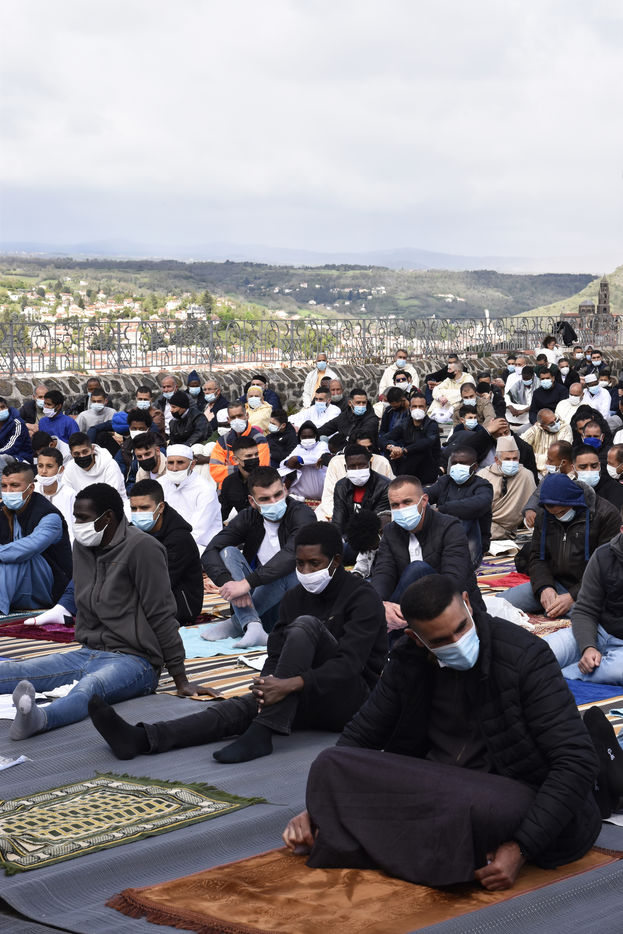 Dans le bassin du Puy-en-Velay, territoire très catholique, une communauté de 5 000 musulmans vit et pratique son culte. Le Ramadan 2021 s?est finit par une prière à ciel ouvert dans la cour de la mosquée Ar-Rhama, dans le quartier de Guitard, d?où on aperçoit la cathédrale Notre-Dame-du-Puy et la grande statue de la vierge Marie. Des centaines de fidèles se sont réunis jeudi 13 mai, avec leur propre tapis de prière et masque, crise sanitaire oblige, pour assister à la prière de 30 minutes.