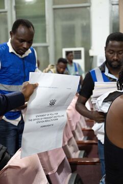 After a long and hot day of voting in Ghana, the counting of votes began directly at the polling stations after 5pm. The aggregation of results continued late into the night at the constituency counting centres. Irregularities and tensions surrounded voting and the transportation of ballot boxes in several constituencies, leading to the deaths of two people.