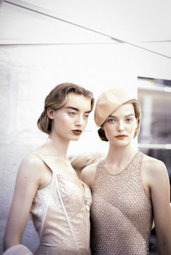 Semaine de la Haute-Couture, le mardi 4 juillet 2017, Ulyana Sergeenko présente sa collection inspirée des femmes fatales à l'époque des gangsters années 40. Aventureuse et froide, l'héroïne d'Ulyana Sergeenko semble sortir des vieux films américains et des romans du vingtième siècle. Très couture, très rétro, sa brigade de top models est vue ici en coulisses et dans l'effervescence, au moment de s'élancer pour défiler.