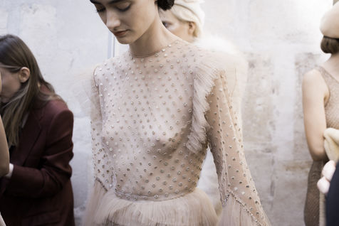 Haute-Couture Week, Tuesday, July 4, 2017, Ulyana Sergeenko presents her collection inspired by the femme fatales of the gangster era of the 1940s. Adventurous and cold, Ulyana Sergeenko's heroine seems to come out of old American movies and twentieth century novels. Very couture, very retro, her brigade of top models is seen here backstage and in effervescence, as she rushes out to parade.