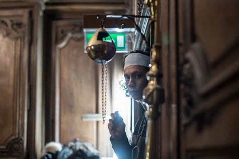 St. Merri's Church hosted the Icosae parade on January 17th. Church lights, a rainy day, ciboriums, stained glass windows and a procession of mannequins during the backstage gave a cinematic color to this moment.