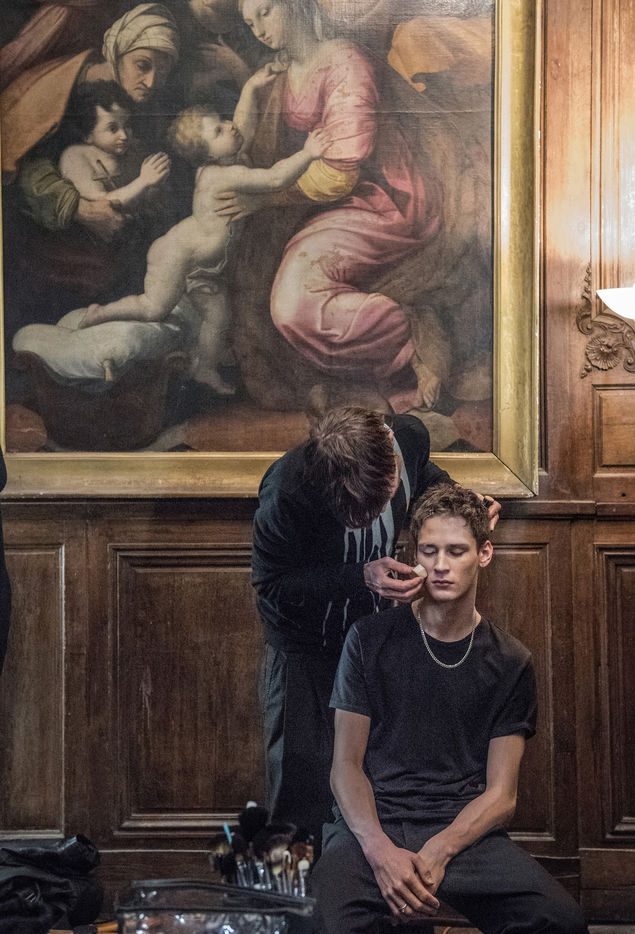 L'église Saint-Merri a accueilli le défilé Icosae le 17 janvier dernier. Lumières d'église, un jour pluvieux, ciboires, vitraux et cortège des mannequins pendant le backstage ont donné une couleur cinématographique à ce moment.