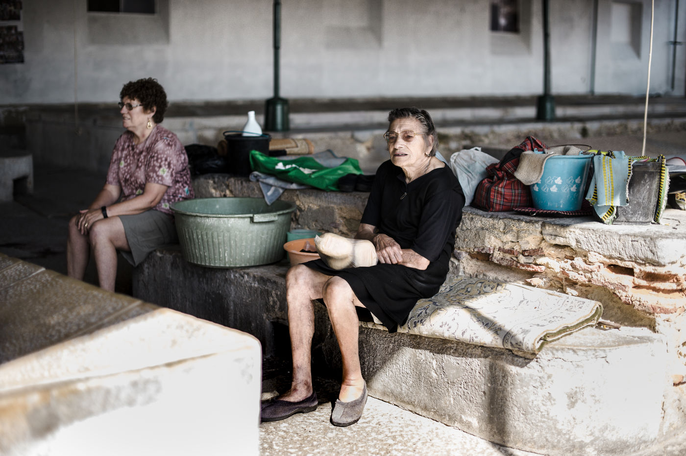 The oldest wash-house, in the old district of Madragoa, reopened in 2014 to the last washerwomen of Lisbon, counted twelve basins. Alvaro Monteiro, son of a washerwoman, was very attached to this old place of Lisbon, hidden but alive. He also washed carpets for various clients. Guardian of the temple, in the summer, he openned the gates every morning to these last few women to come wash clothes and talk for a few hours.