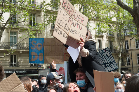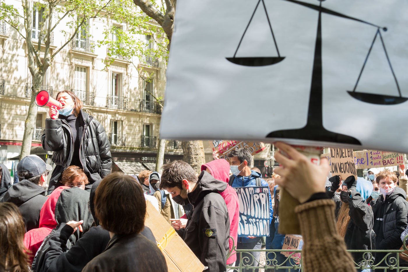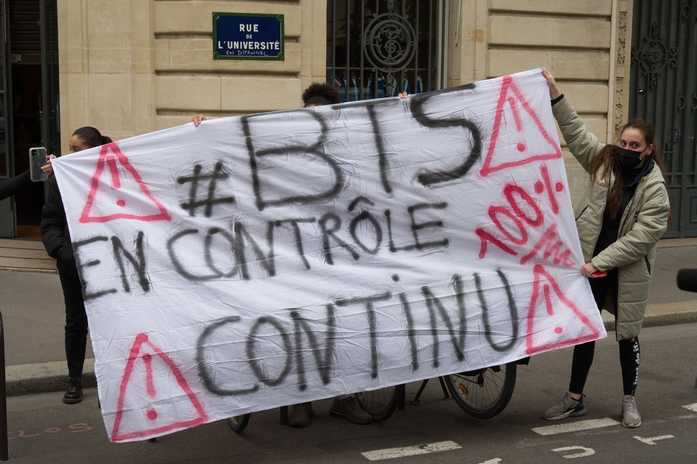UNE CENTAINE DE LYCEENS ET DE BTS SE SONT RASSEMBLES PRES DU MINISTERE DE L'EDUCATION NATIONALE.