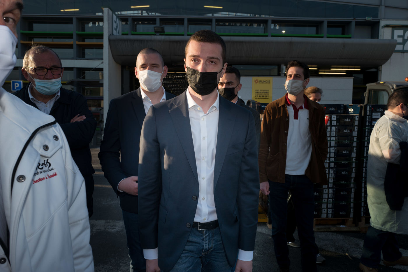 JORDAN BARDELLA VISITE LE MARCHE INTERNATIONNAL DE RUNGIS DANS LE CRDES DE LA CAMPAGNE ELECTORALE DES REGIONALES OU IL EST CANDIDAT POUR LA PRESIDENCE DE LA REGION ILE DE FRANCE.