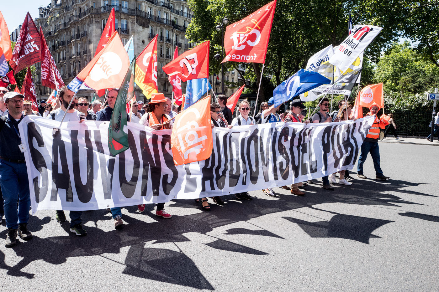 MANIFESTATION A L'APPEL DE TOUT LES SYNDICATS DE L'AUDIOVISUEL PUBLIC DANS LES RUES DE PARIS POUR DENONCER LA SUPPRESSION DE LA REDEVANCE TELE;