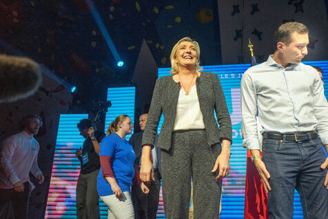 FRANCE - MEETING DU RN A HENIN BEAUMONT JORDAN BARDELLA ET MARINE LEPEN