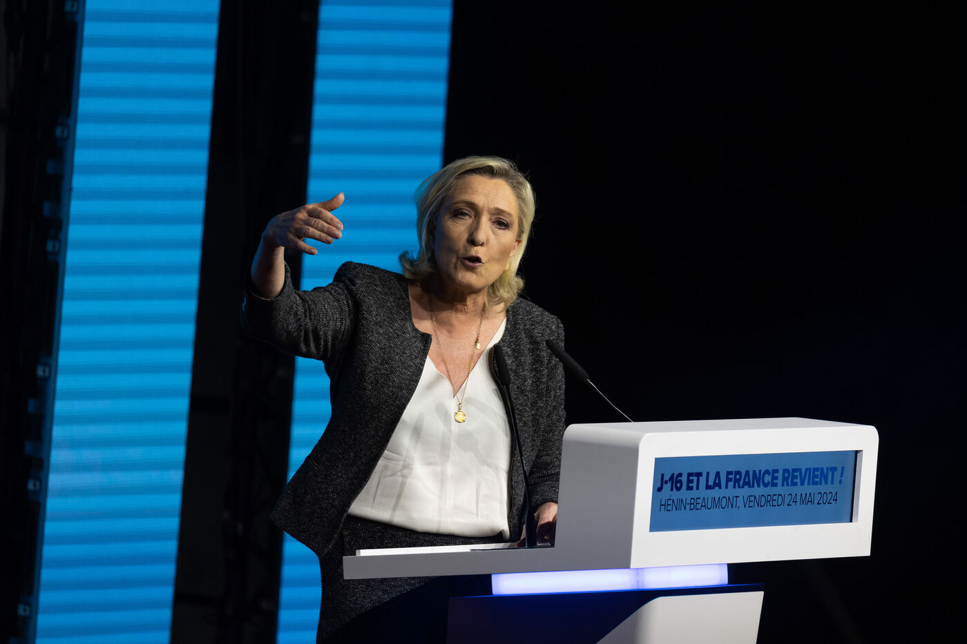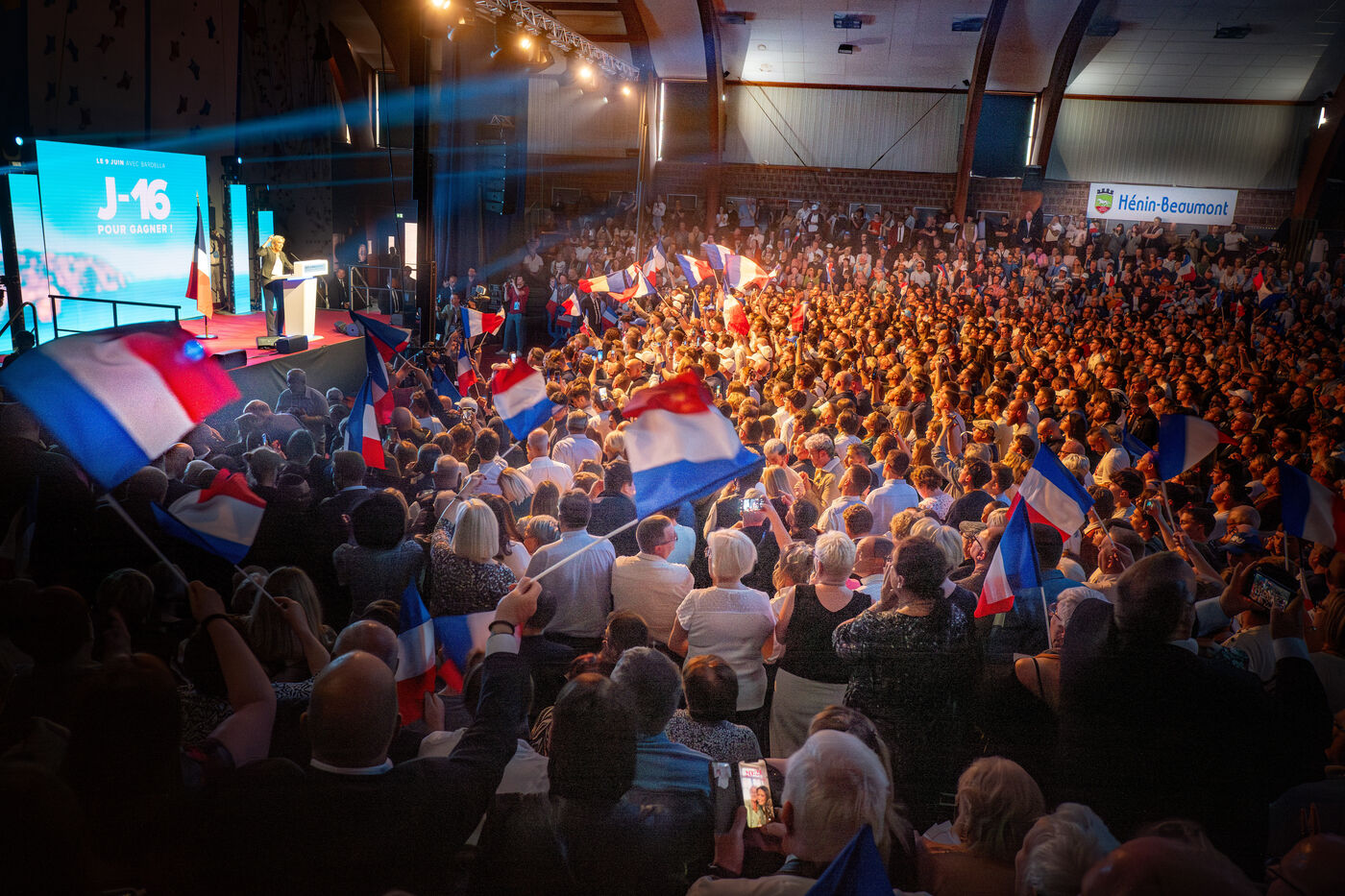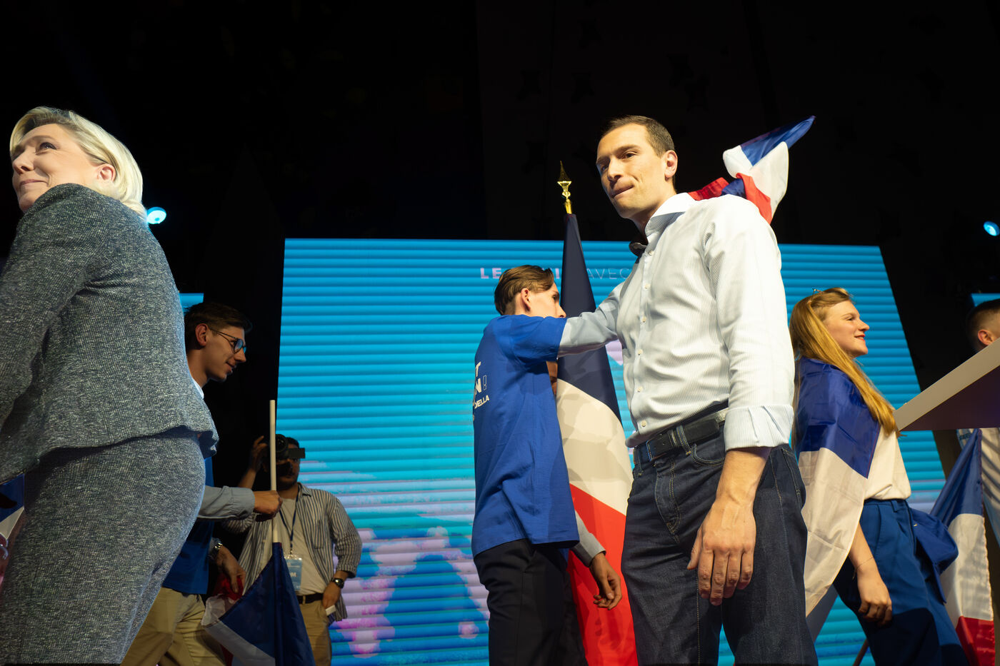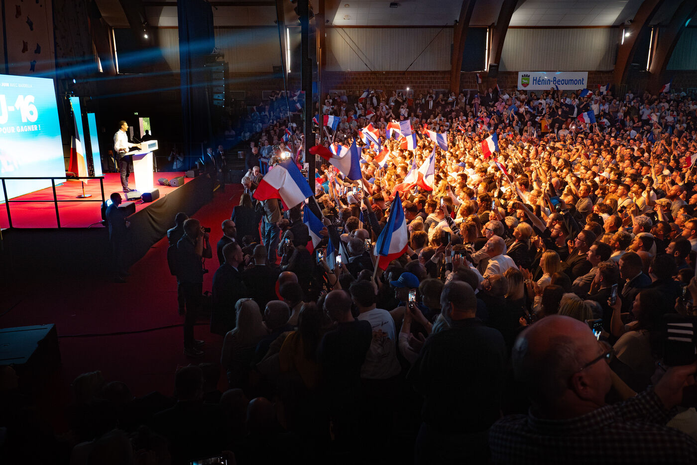 MEETING DU RN A HENIN BEAUMONT JORDAN BARDELLA ET MARINE LEPEN
