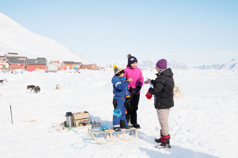 Siorapaluk is the inhabited village at the most northern part of Greenland, and of the planet. It is located on 78 lat. north and 1362km south from the North Pole. Siora means sand in Greenlander. It has been named this way because under the layer of ice, a tiny beach is hidden. About forty people live there, most of them hunters and families. Several residents are descendants from Canadian Inuits, who migrated to Siorapaluk around 1880. The village has been made famous by writer Jean Malaurie in his best seller "Les derniers rois de Thulé" in 1955. Today in Siorapaluk, life has remained traditional but has modernised and westernised as well. They now have a shop, a school, a dispensary and a heliport. Electricity works in the village, as well as the radio and sometimes internet.