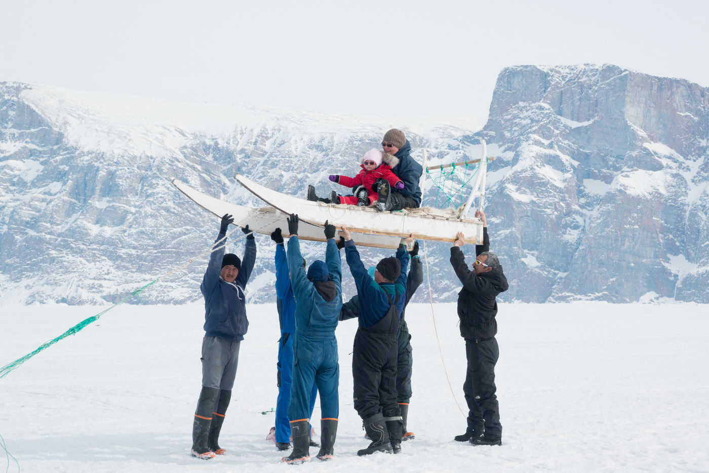 À Uummannaq, tous les ans en avril, a lieu la traditionnelle course de chiens de traîneaux. Un moment de convivialité pendant lequel toutes les familles se réunissent sur la banquise ... Les traîneaux vainqueurs sont portés fièrement par les membres de la famille tandis que les chiens sont récompensés par du phoque.