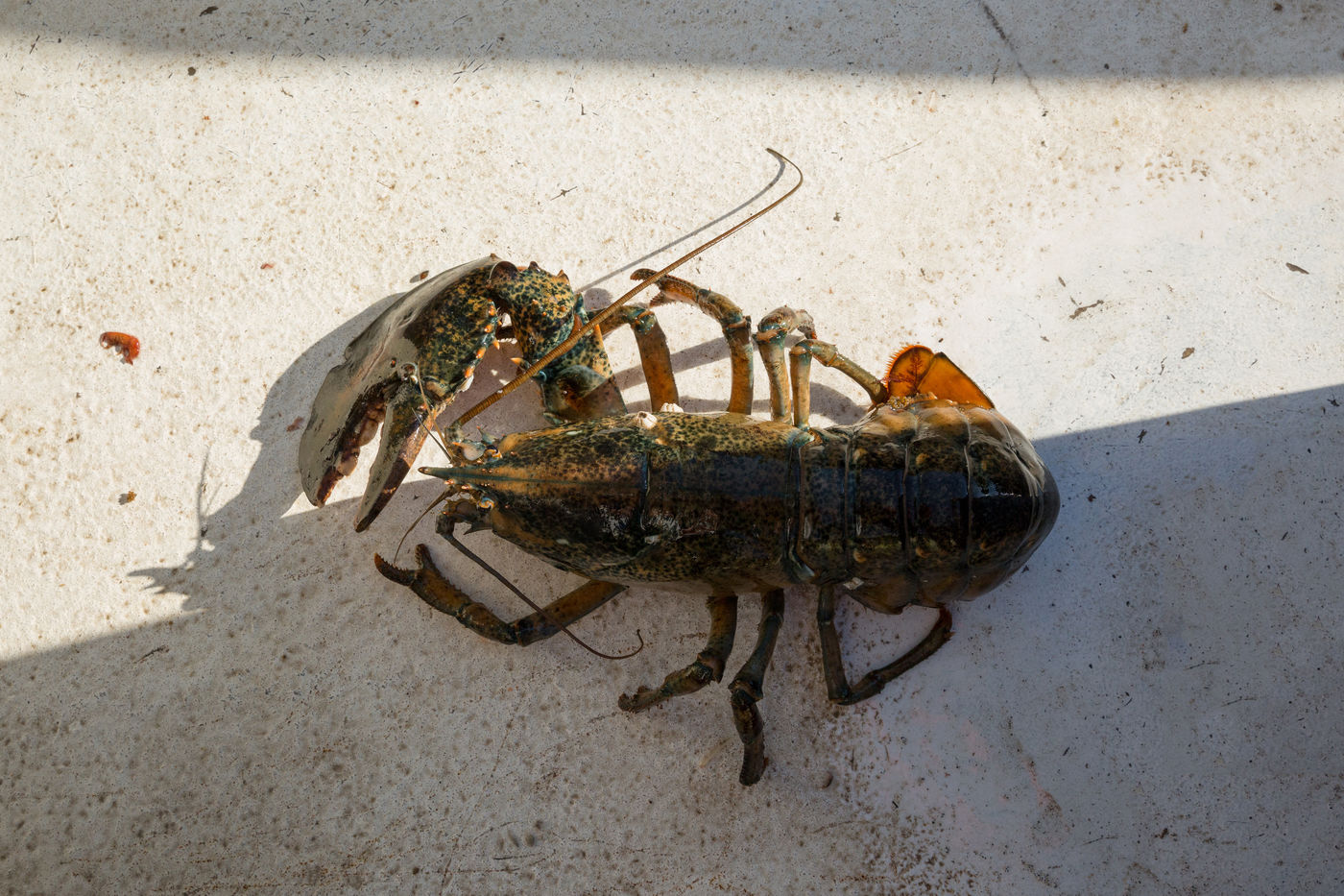 Les pinces imposantes des crustacés sont maintenues fermées avec de gros élastiques.