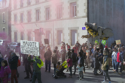 3000 personnes ont déambulé dans les rues de Guéret, samedi 5 octobre 2024 pour dire non à l'implantation de l'usine Biosyl. Biosyl est une usine de pellets (granulés bois) qui, selon les associations qui s'opposent à son implantation, risque d'augmenter la déforestation, de détruire de nombreuses petites scieries locales. Le site prévu est riche en biodiversité. Etaient présents des associations environnementalistes (France Nature Environnement, Greenpeace), des syndicats (CGT, Confédération paysanne), des députés (Mathilde Panot et Berenger Cernon - LFI), une euro-députée (Marie Toussaint - Les écologistes), des conseillers régionaux (Jean-Lous Pagès et Amandine Dewaele - Les Ecologistes), des élus locaux dont Marie-Françoise Fournier, la maire de Guéret, etc...