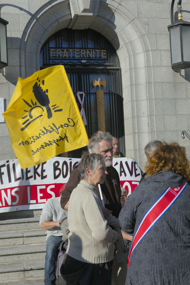 3,000 people demonstrated in the streets of Guéret on Saturday 5 October 2024 to say no to the Biosyl plant. Biosyl is a pellet factory which, according to the associations opposing its construction, risks increasing deforestation and destroying many small local sawmills. The planned site is rich in biodiversity. In attendance were environmental associations (France Nature Environnement, Greenpeace), trade unions (CGT, Confédération paysanne), MPs (Mathilde Panot and Berenger Cernon - LFI), an MEP (Marie Toussaint - Les écologistes), regional councillors (Jean-Lous Pagès and Amandine Dewaele - Les Ecologistes), local councillors including Marie-Françoise Fournier, the mayor of Guéret, etc...