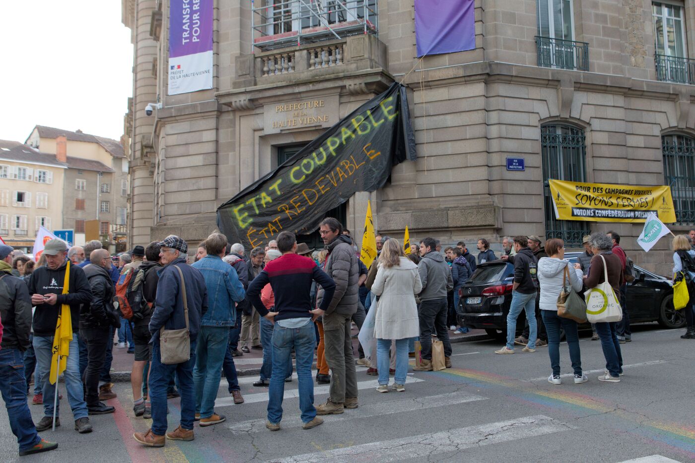 Le 17 avril 2025, devant la Prefecture de la Haute-Vienne, a Limoges (France), plus de 250 personnes se sont rassemblees pour soutenir le GAEC Maris. Producteur laitier en agriculture biologique a Ladignac-le-Long, ce GAEC a ete victime d une grave erreur de diagnostic de tuberculose bovine. Plus d un an apres les faits, l Etat refuse d indemniser cette ferme. Les pertes financières et morales s elevent a 230 000 euros.