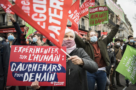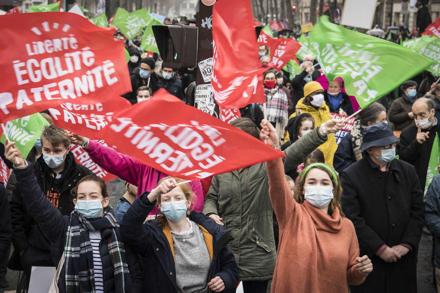 A l'appel de La Manif Pour Tous, plusieurs milliers de manifestants se sont rassemblés contre la loi bioéthique, la PMA sans père (Procéation Médicalement Assistée) ouverte à toutes et la GPA (Gestation Pour Autrui), devant le Ministère des Solidarités et de la Santé.