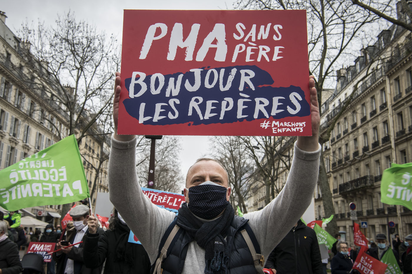 Manifestation contre la loi bioéthique, l'ouverture de la PMA à toutes et la GPA organisée par La Manif Pour Tous.