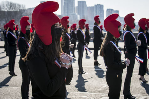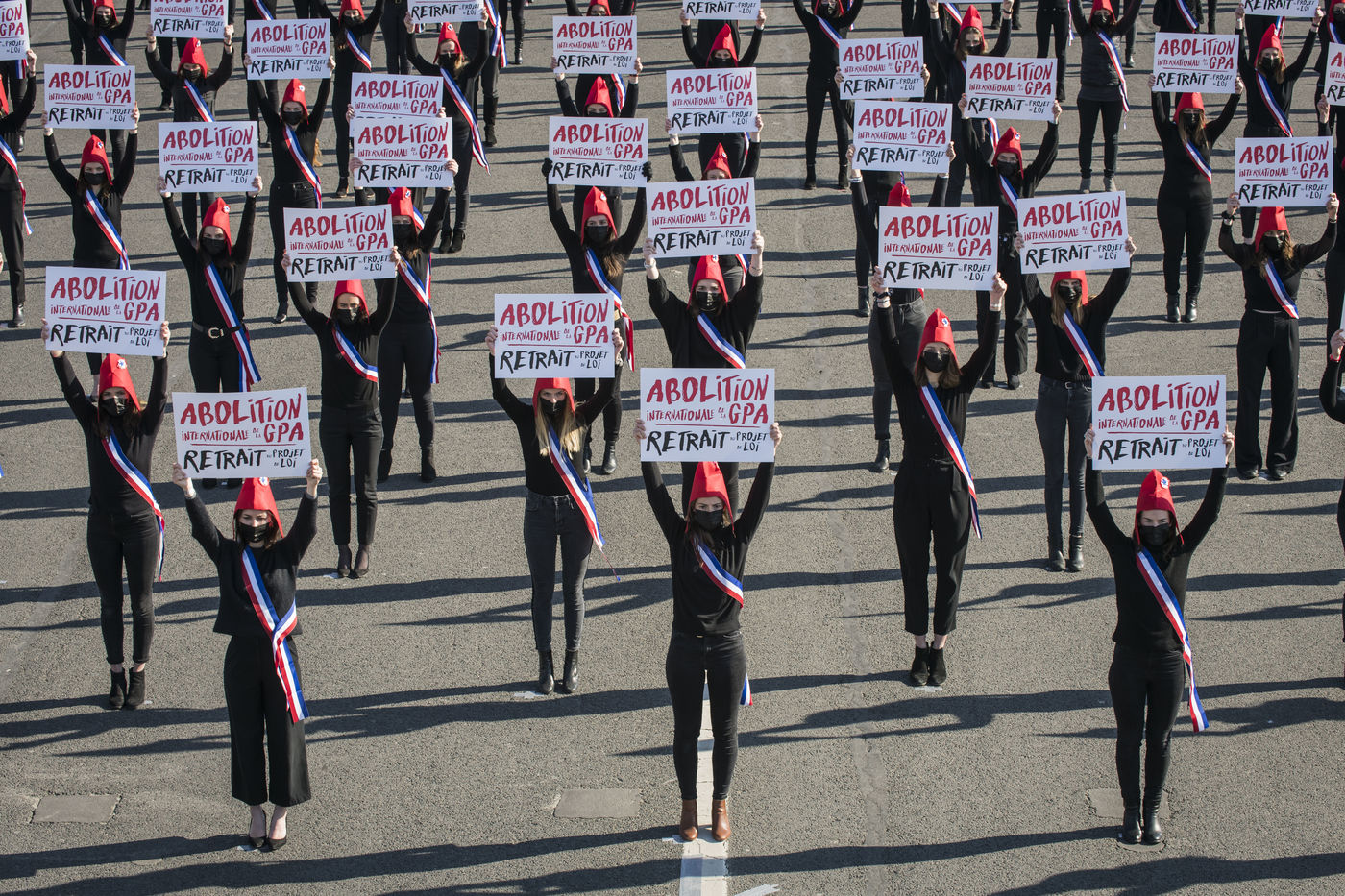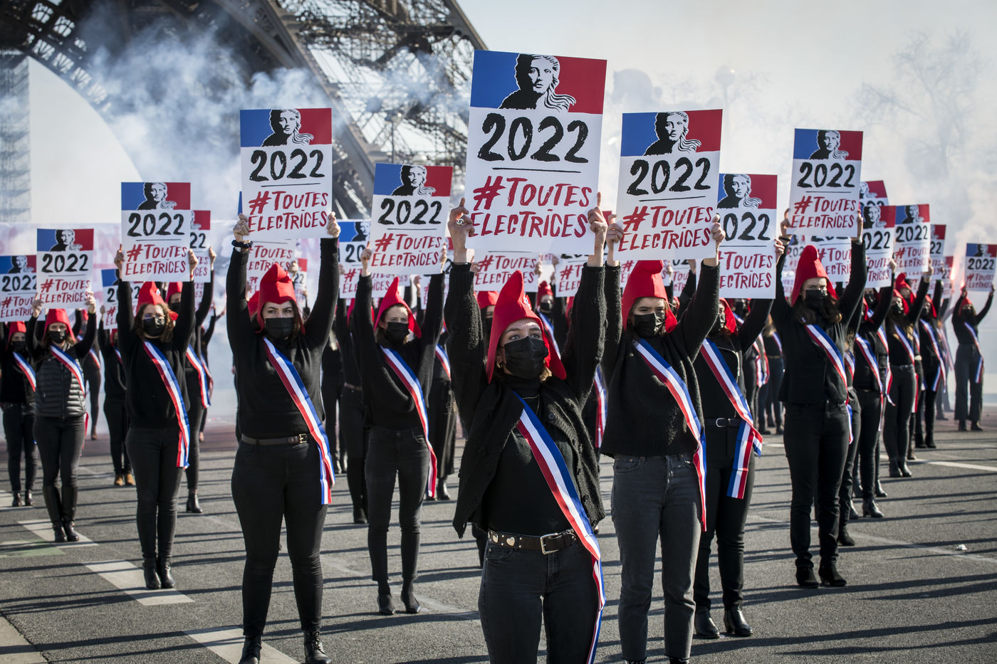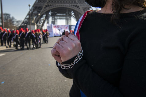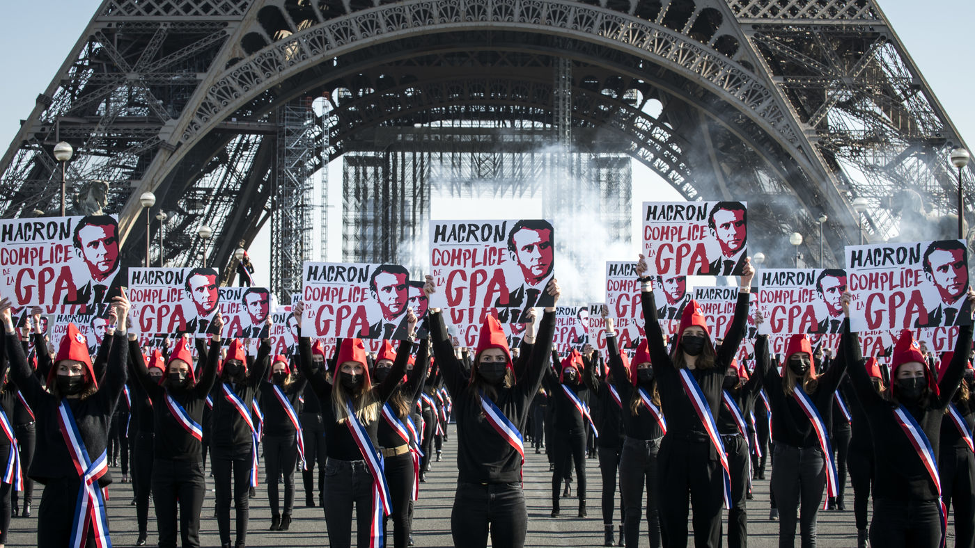 On the eve of International Women's Rights Day, the Manifesto Pour Tous mobilized against FGM and fatherless LDCs. Inviting the press 268 Mariannes participated in a scenography and questioned Emmanuel Macron against the attacks and threats to women's rights, at the foot of the Eiffel Tower.