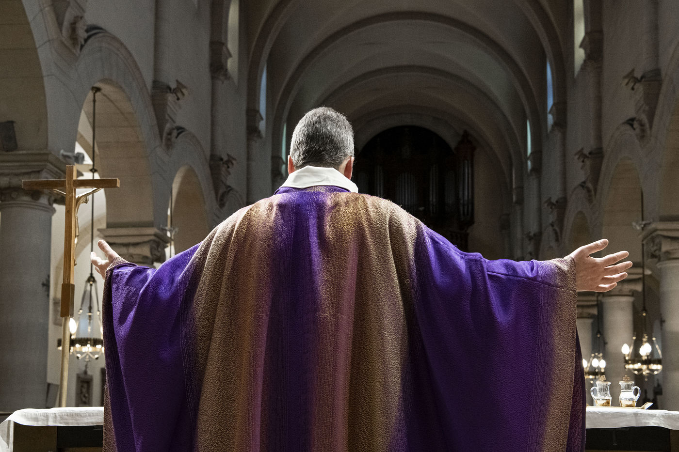 La messe se répartit en deux grands moments avec la liturgie de la parole et la liturgie de l'Eucharistie.