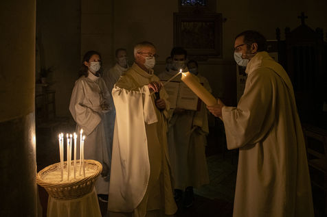 Cette année, en raison du confinement et des restrictions sanitaires, la vigile pascale s'est tenue a 7 heures, avant le lever du soleil.