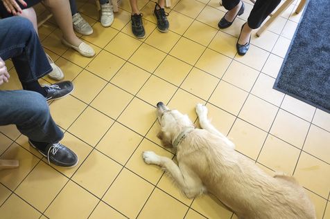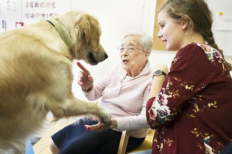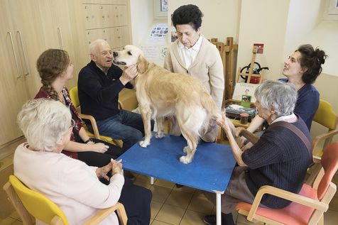 Atelier de zoothérapie avec la chienne Nova, dans la lutte contre la maladie d'Alzheimer.