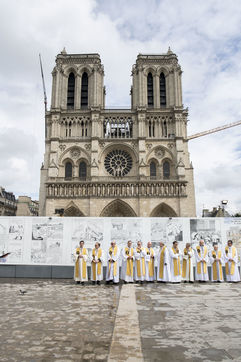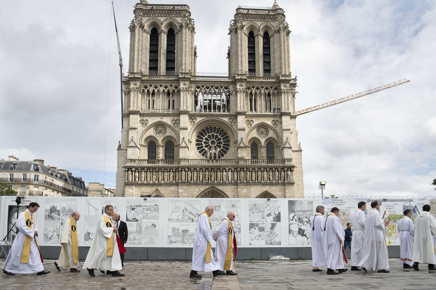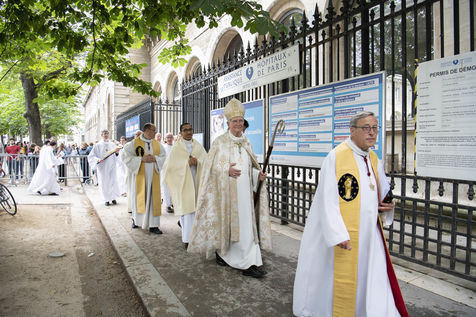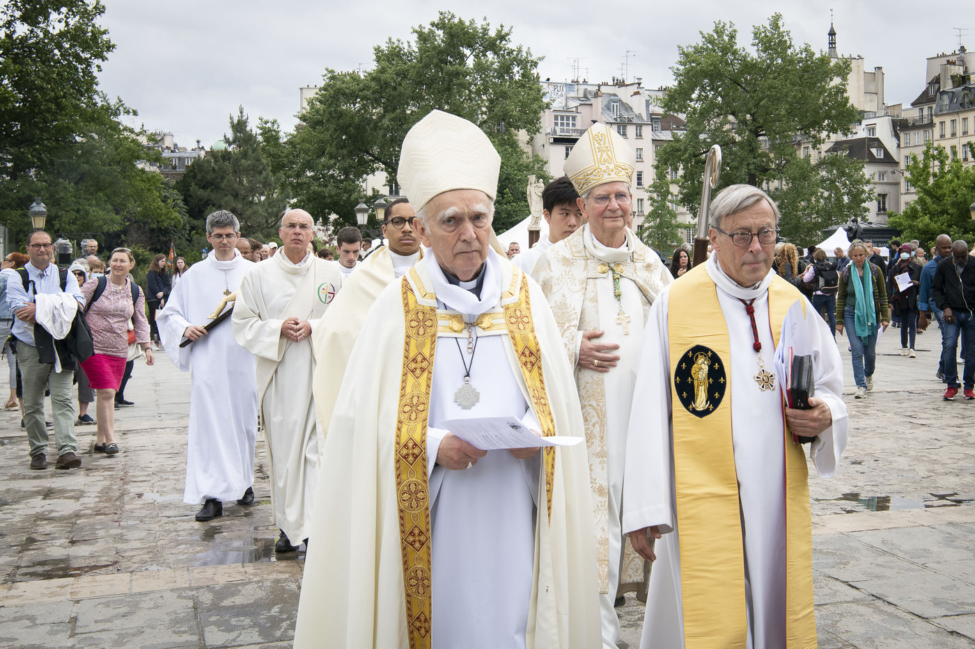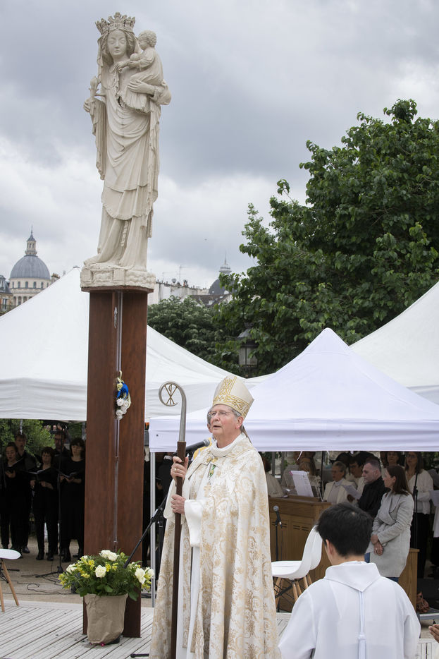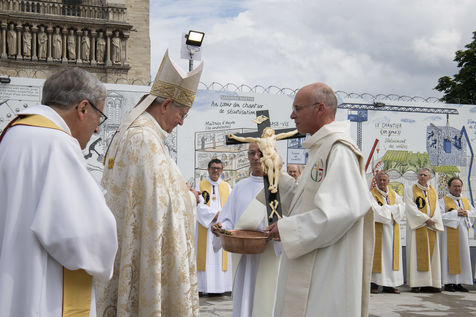 Welcome of Mgr Laurent Ulrich, new archbishop of Paris, on the square of the Notre-Dame cathedral.