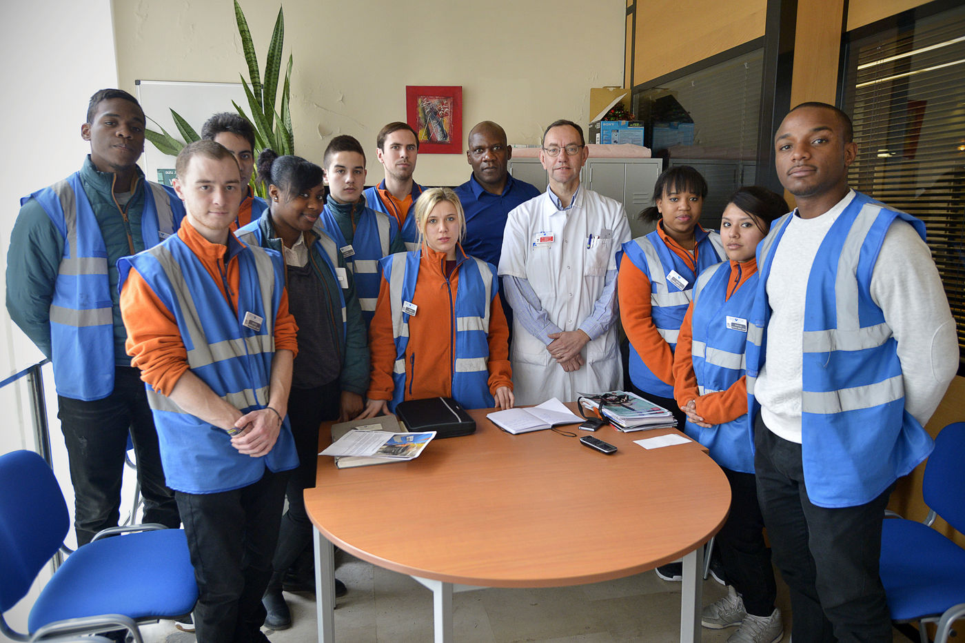 Young people from the association Banlieue Sans Frontière en Action (BSFA), civic service volunteers at the APHP.
