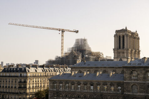 Travaux de restauration de la cathédrale Notre-Dame de Paris, vues de nuit.