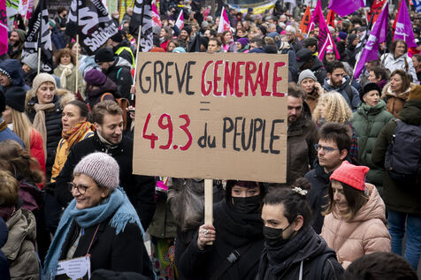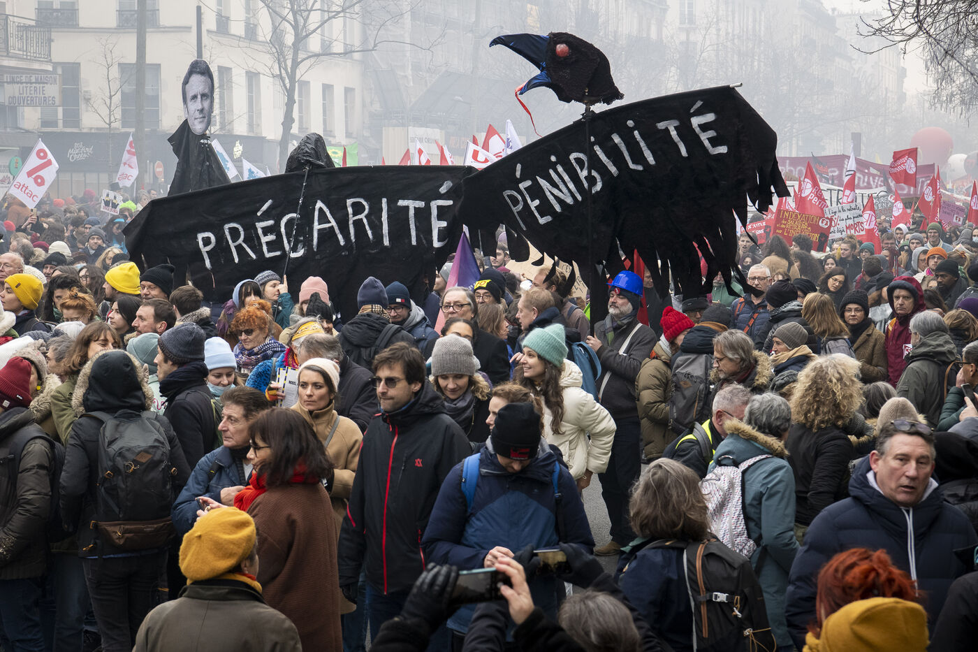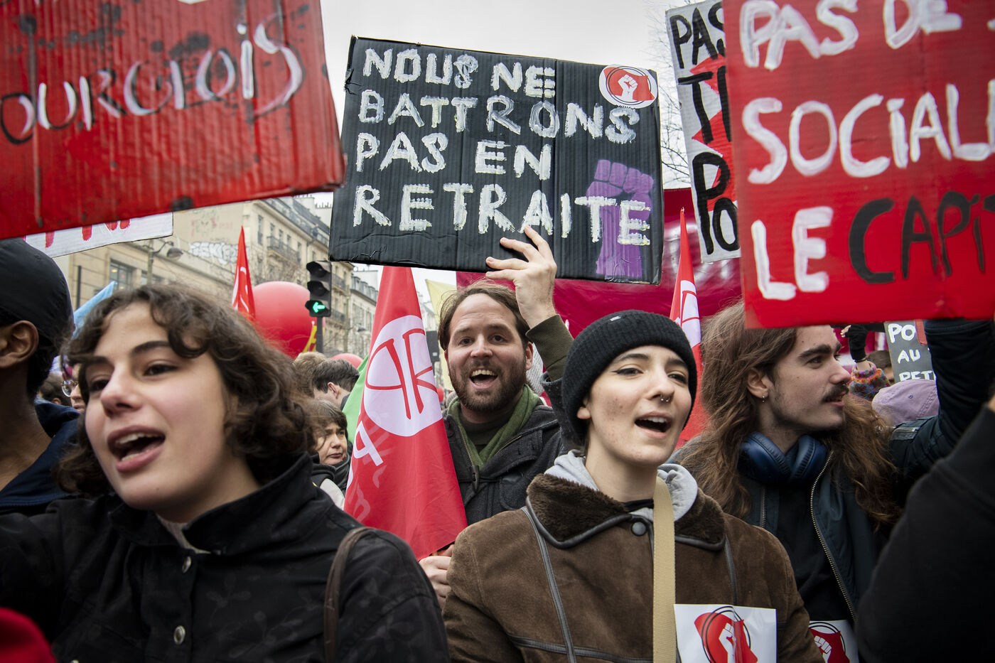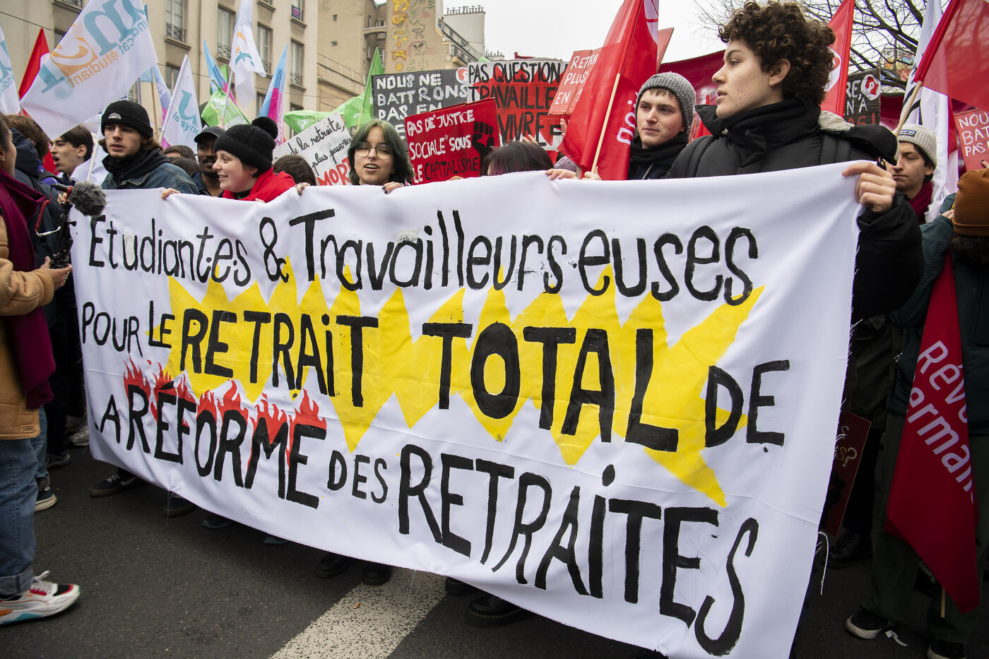 Demonstration against the pension reform. First day of mobilization against the announcement of the postponement of the legal retirement age to 64 years, presented by the Prime Minister Elisabeth Borne.