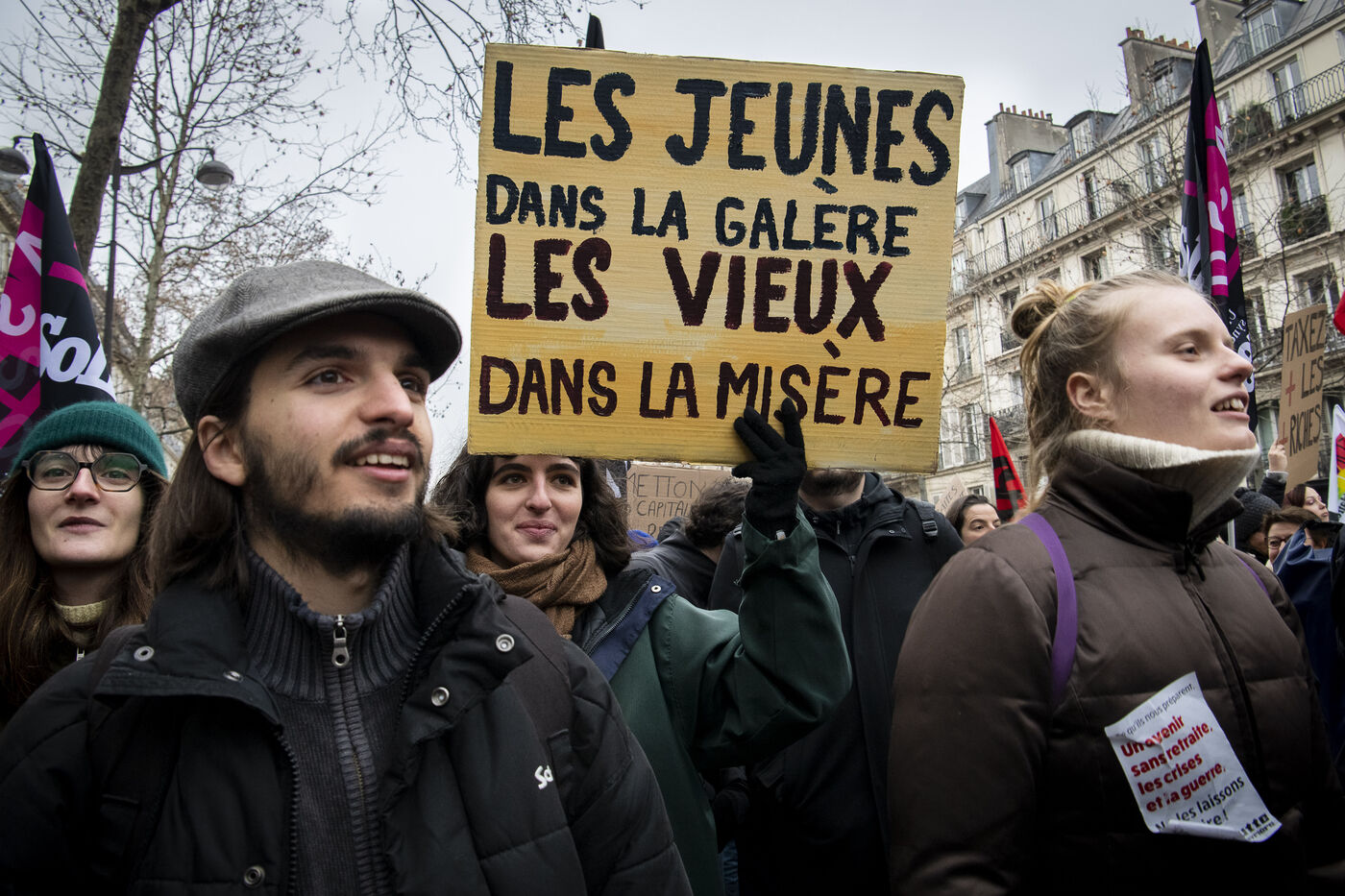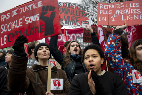 Demonstration against the pension reform. First day of inter-union mobilization.
