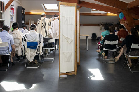 Morning service led by Rabbi Emile Ackermann at the Ayeka community. Ayeka is an Orthodox Jewish community open to the city (Torah Im Derekh Eretz), respectful of Jewish law (halakha) and secular French law, inclusive and vibrant.
