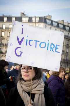 Rally at Place des droits de l'Homme to mark the vote by Congress to enshrine voluntary interruption of pregnancy (IVG) in the Constitution.