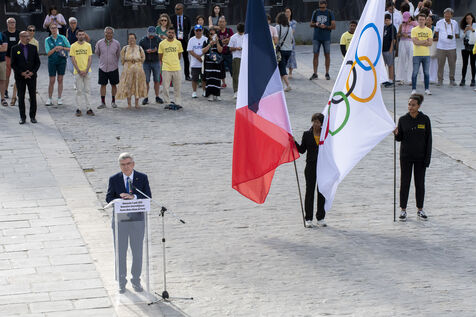 Jeux Olympiques Paris 2024 - Dans le cadre du festival Holy Games, une rencontre interreligieuse s'est tenue sur le parvis de la cathédrale Notre-Dame de Paris.