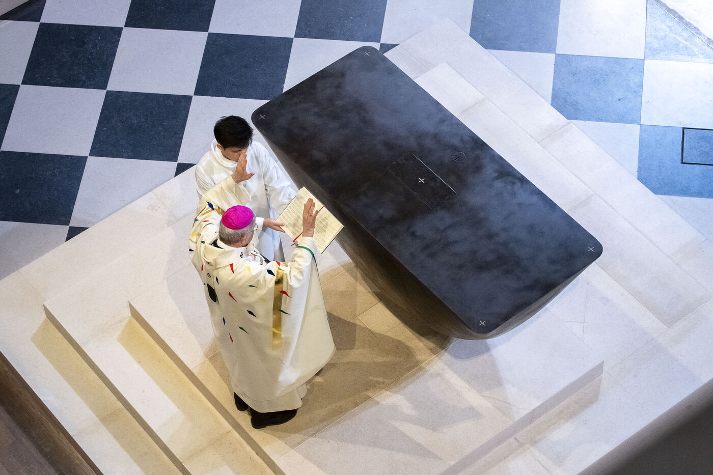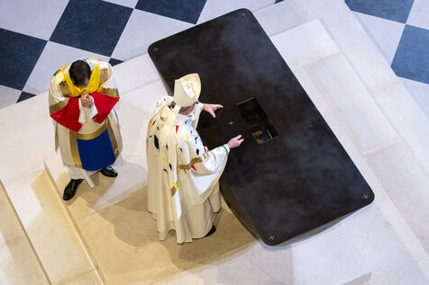 Ceremony to reopen the cathedral of Notre-Dame de Paris. Inaugural altar consecration mass