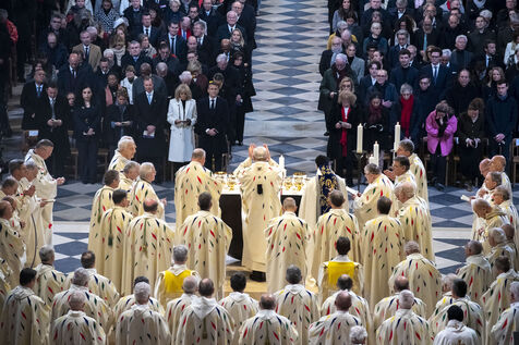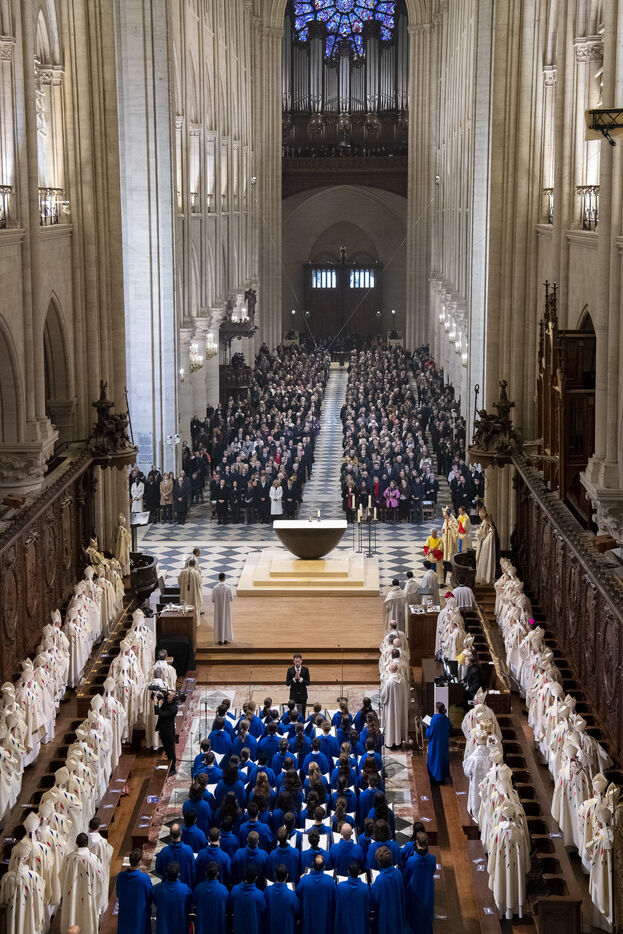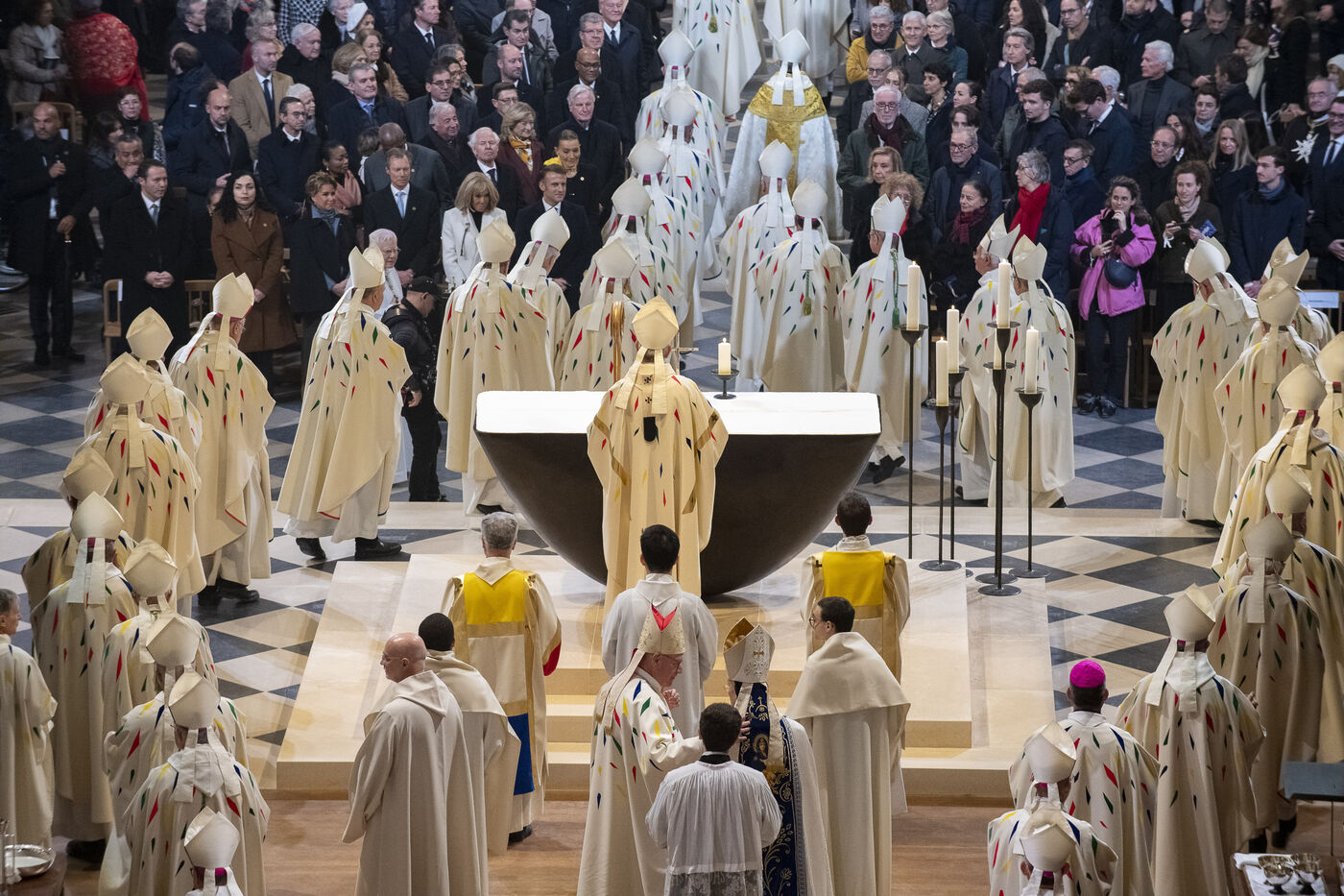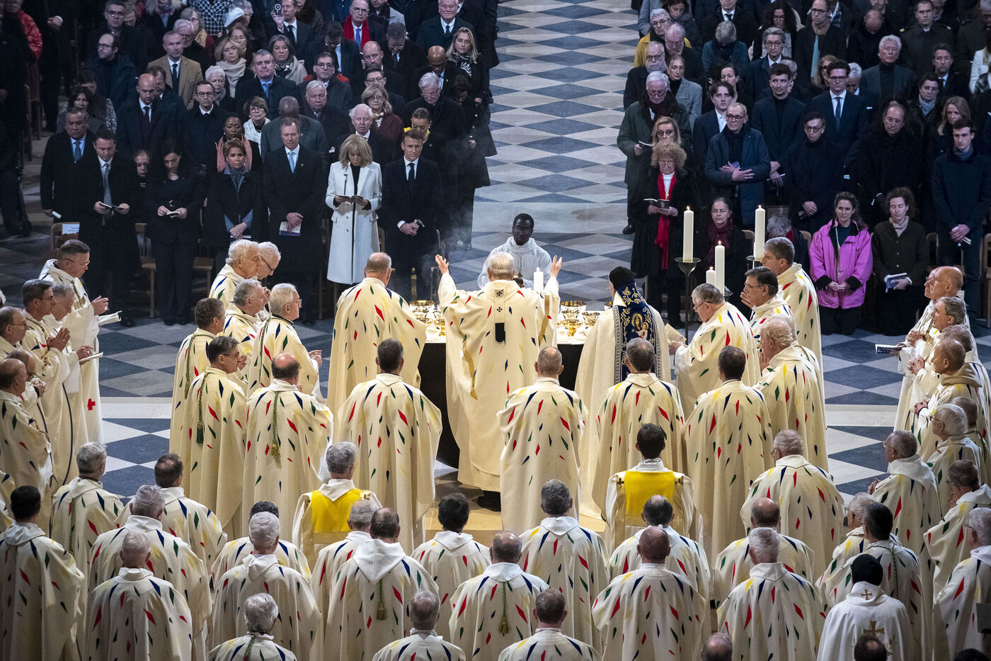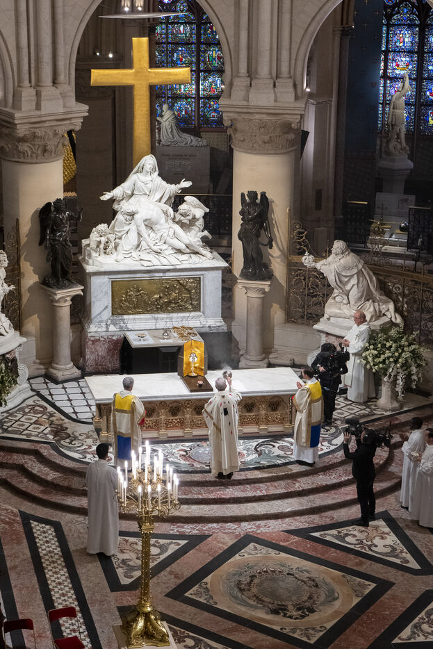 Cérémonie de réouverture de la cathédrale Notre-Dame de Paris. Messe de consécration inaugurale de l'autel