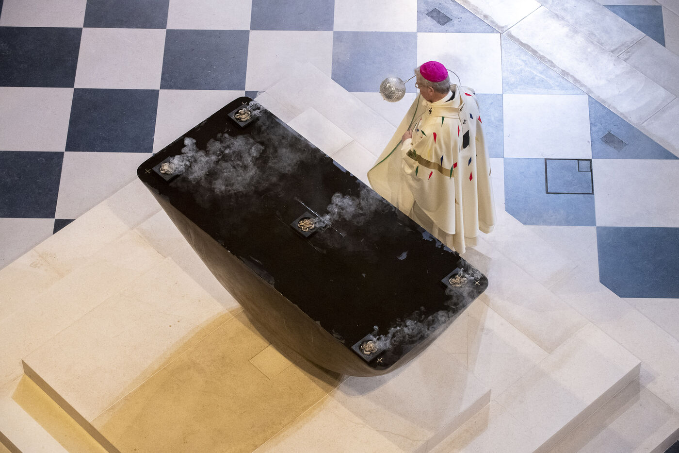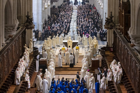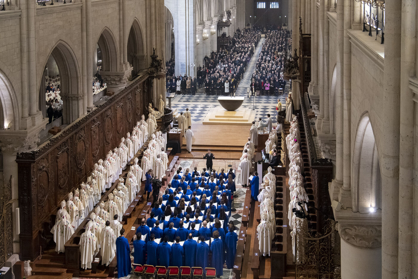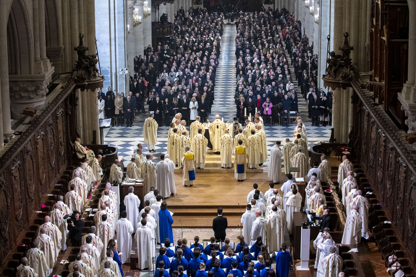 Cérémonie de réouverture de la cathédrale Notre-Dame de Paris. Messe de consécration inaugurale de l'autel