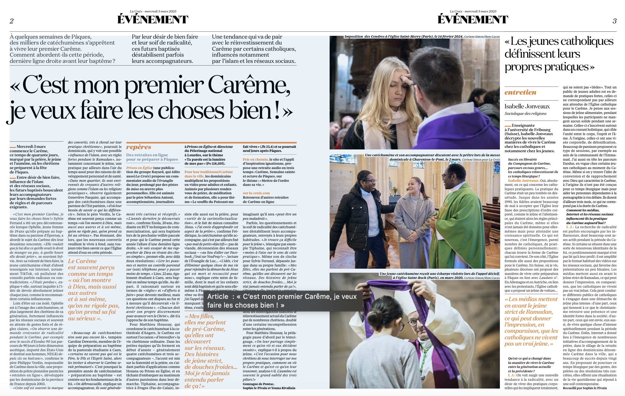 Corinne Simon Publications Séries / Archive Culture — Environnement — Paris — Politique — Société — Spiritualité — Sélection de séries Libération 05/04/2025 Le Parisien 22/03/2025 La croix 05/03/2025 La Croix 05/03/2025 La Vie 06/02/2025 La Vie 30/01/2025 JD NEWS 29/12/2024 La Croix 14/11/2024 La Croix 25/10/2024 La Vie 24/10/2024 Le Pèlerin 03/10/2024 La Vie 26/09/2024 L'Illustré 26/09/2024 La Croix 13/09/2024 La Vie 12/09/2024 La Vie 12/09/2024 La Croix l'Hebdo 07/09/2024 La Vie 22/08/2024 Le Parisien 20/07/2024 Le Nouvel Obs 23/05/2024