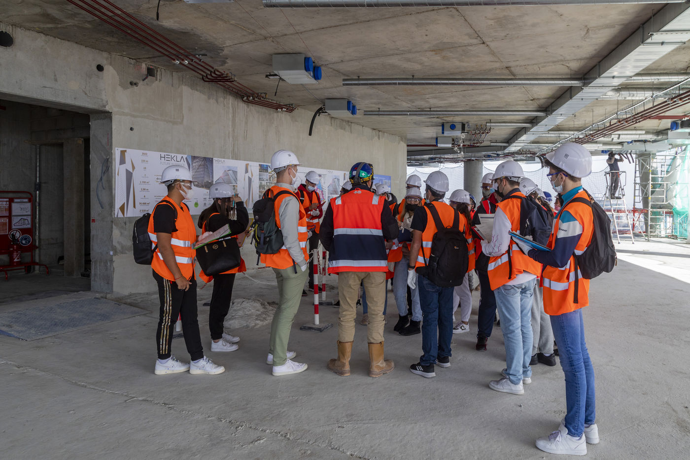 La Fédération française du bâtiment Grand Paris Île-de-France a organisé, les 14 et 15 octobre 2021, les Coulisses du bâtiment pour faire découvrir la filière du bâtiment et ses métiers aux jeunes. Six grands chantiers ont ouvert leurs portes dont la Tour Hekla, à la Paris Défense.Ce gratte-ciel de 220 mètres a été dessiné par l'architecte français Jean Nouvel. Les travaux ont débuté en août 2018, avec Vinci Construction France, et se termineront au 3e trimestre 2022.