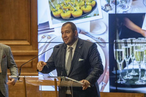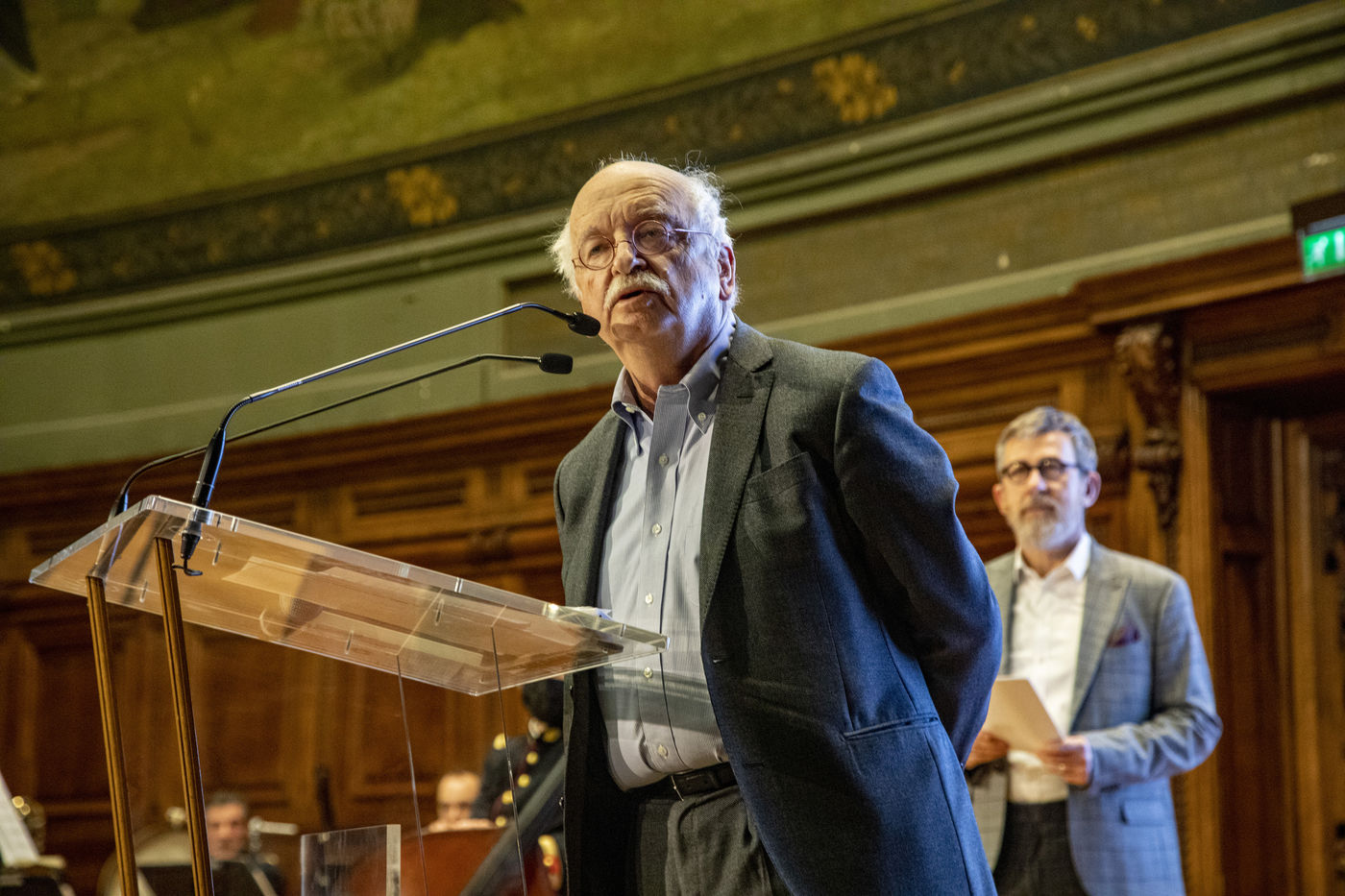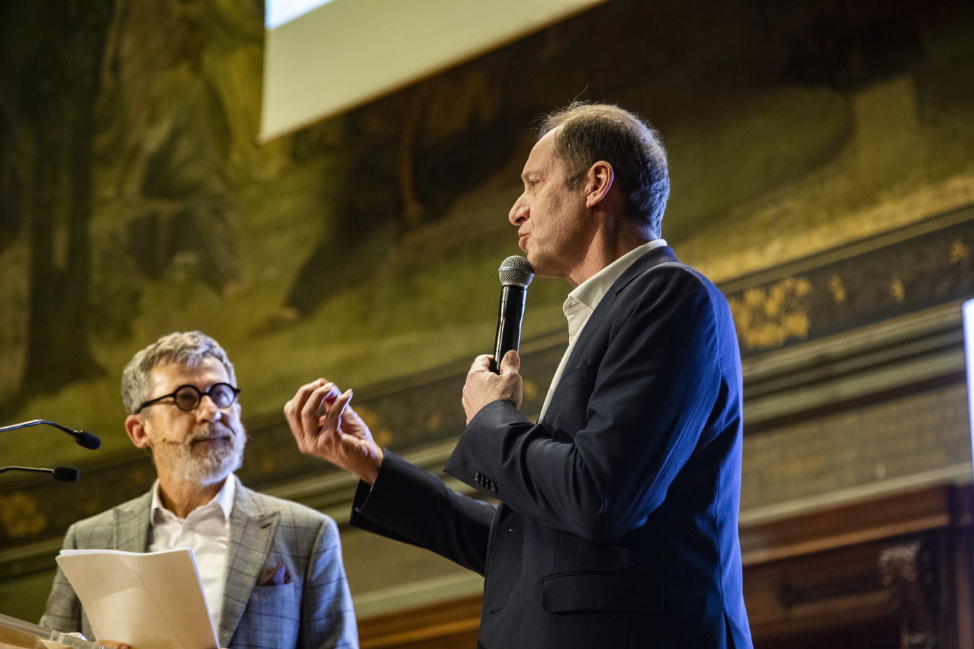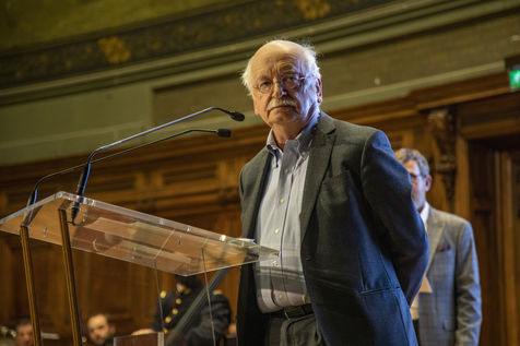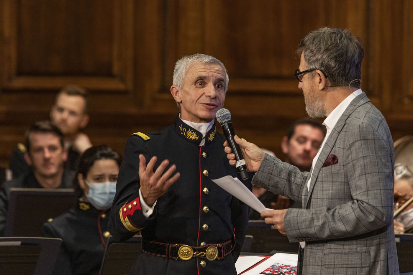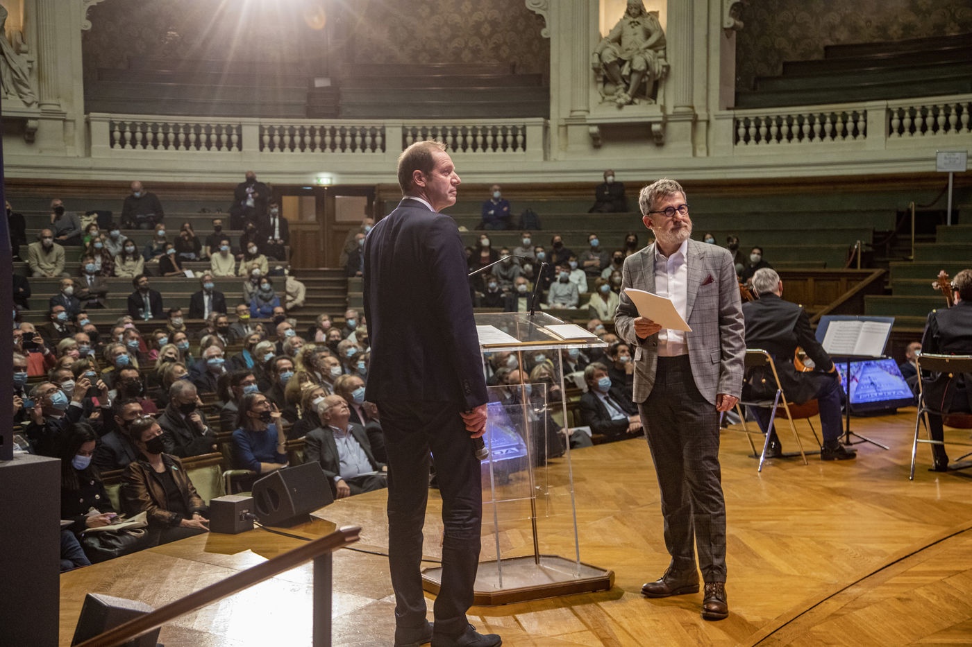 France, Paris, 2021-12-15, La Societe de Geographie, qui fête son bicentenaire, a organisé une cérémonie dans le grand amphitheatre de La Sorbonne en presence de personnalites dont SAS Albert II de Monaco, Erik Orsenna, Christian Prudhomme, au son de l'orchestre de la Garde Républicaine. L'évènement était animé par Jamy Gourmaud.