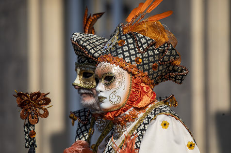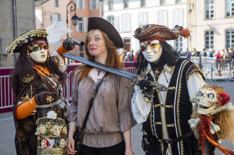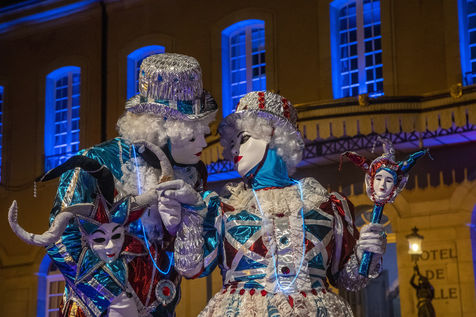 France, Remiremont, 2022-03-27. For 25 years, Venice has invited itself to Remiremont. For four days, the squares and streets of the city were invaded by 500 costumed characters, as in Venice, from all over France, Germany, Belgium, Switzerland.