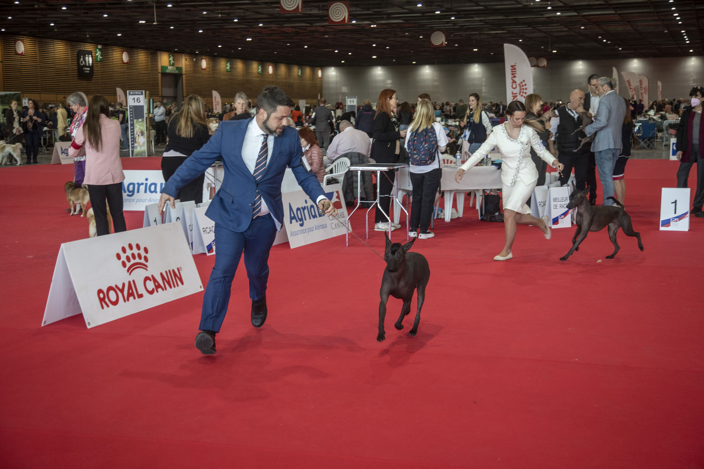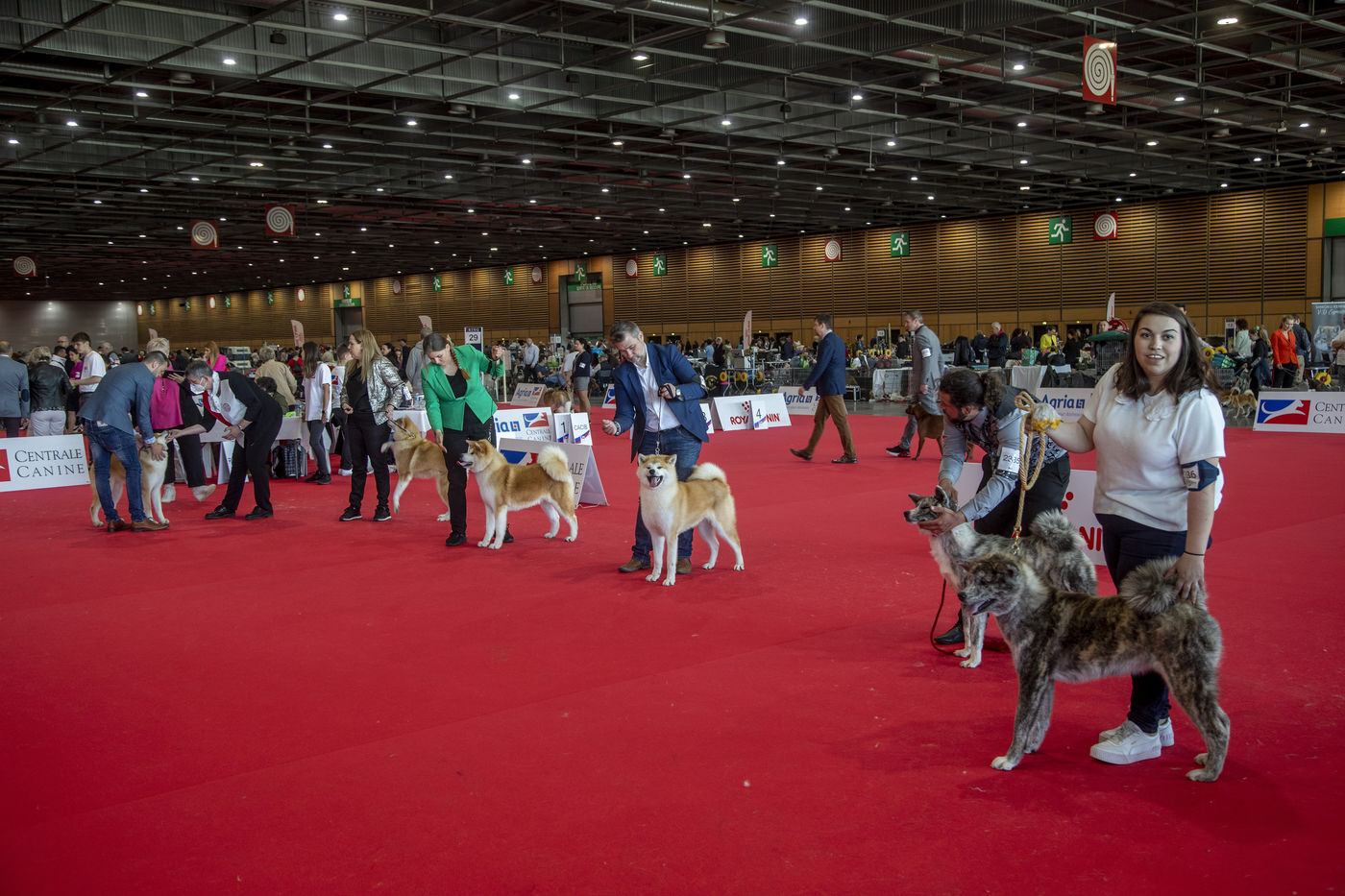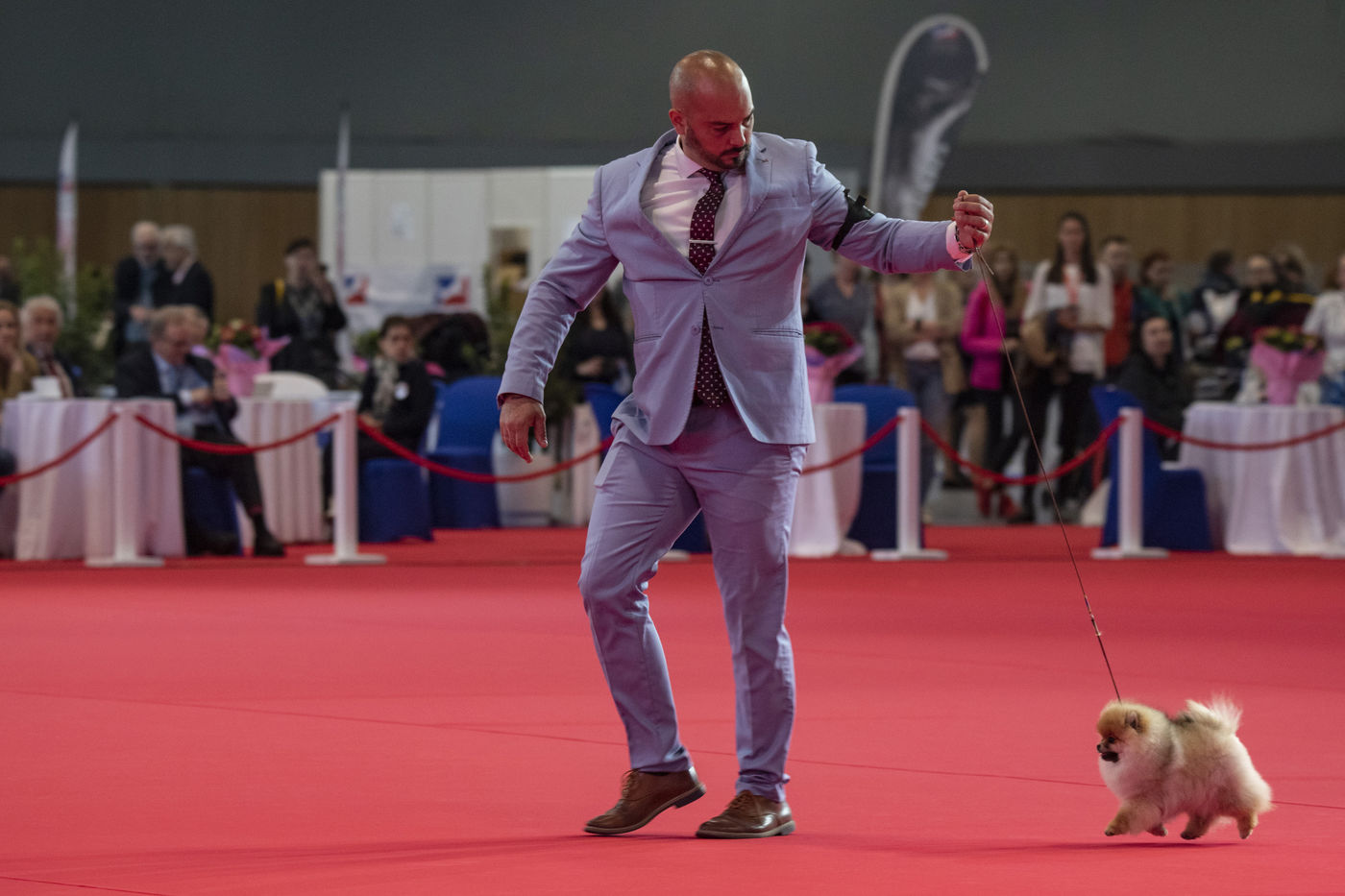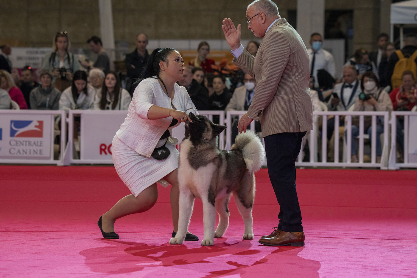 France, Villepinte, 2022-04-22. Le championnat d'Europe et de France des chiens de race a démarré pour trois jours au Parc des expositions Paris-Nord Villepinte, organisé par la Société Centrale Canine. Plus de 18 000 chiens provenant de 280 races y participent, présentés sur 70 rings avec des finales des « Best of » sur un ring d'honneur. Photographie par Caroline Paux