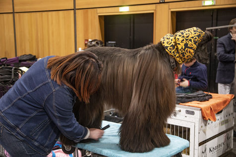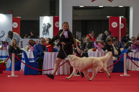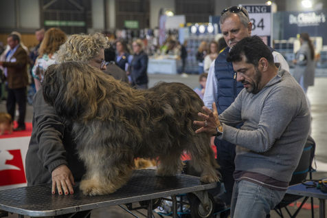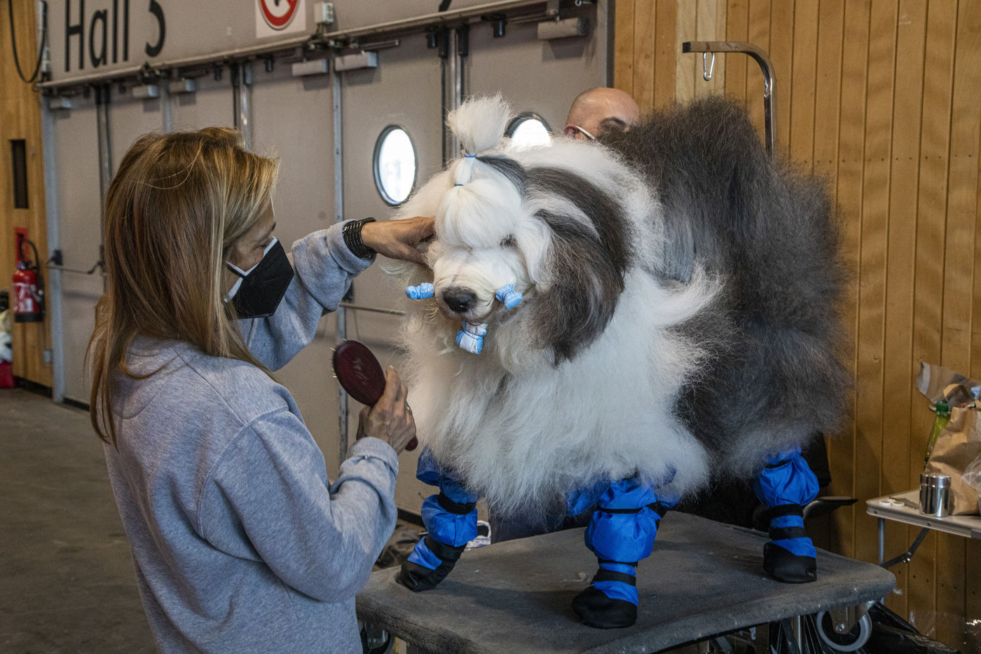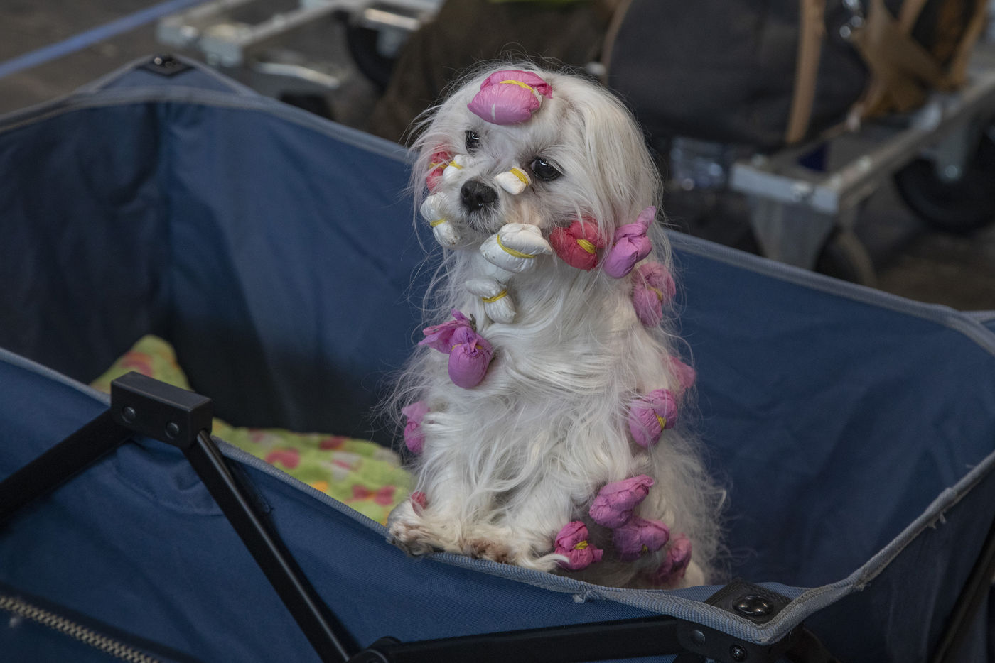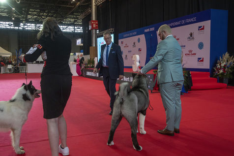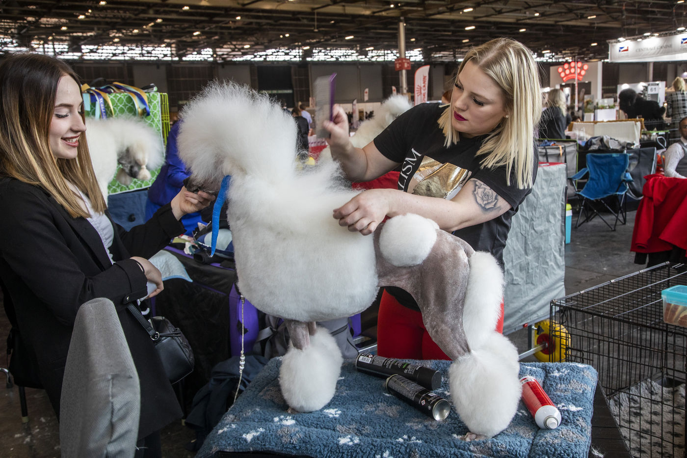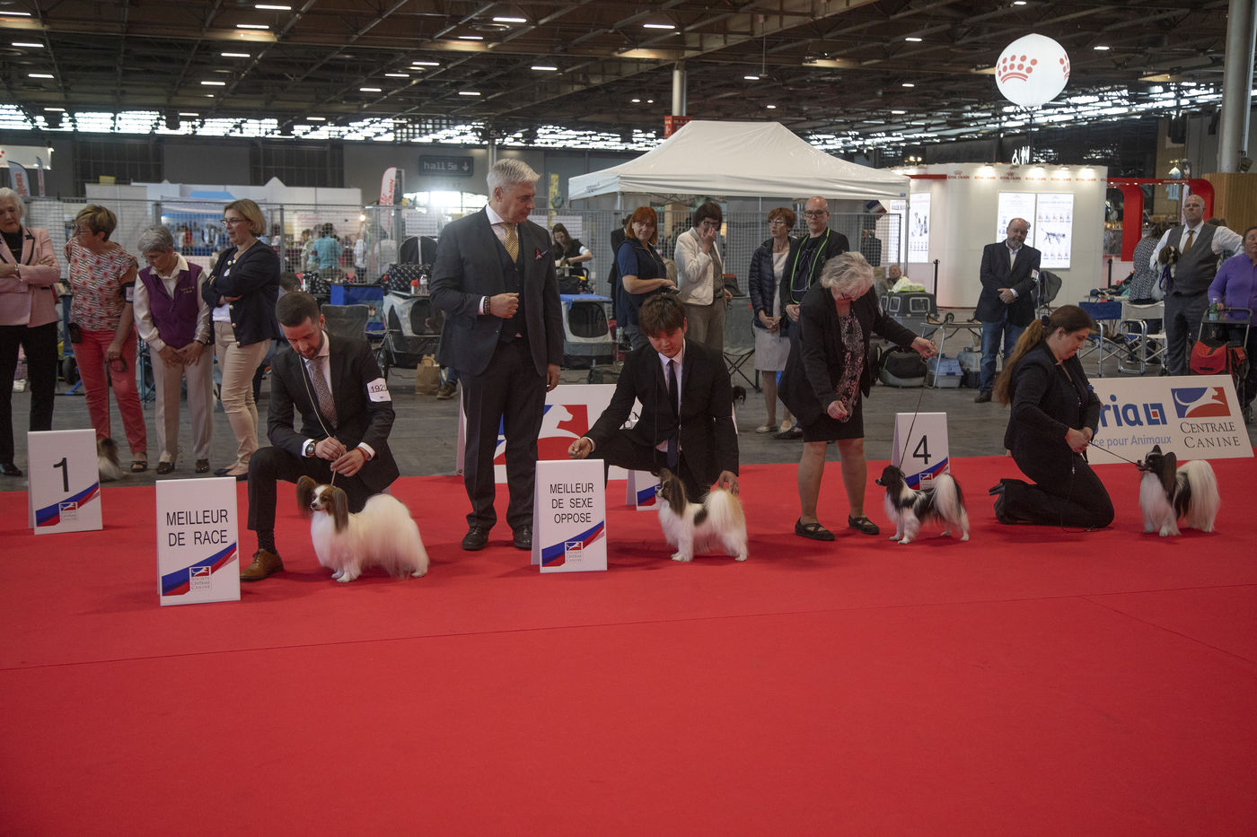 France, Villepinte, 2022-04-22. Le championnat d'Europe et de France des chiens de race a démarré pour trois jours au Parc des expositions Paris-Nord Villepinte, organisé par la Société Centrale Canine. Plus de 18 000 chiens provenant de 280 races y participent, présentés sur 70 rings avec des finales des « Best of » sur un ring d'honneur. Photographie par Caroline Paux