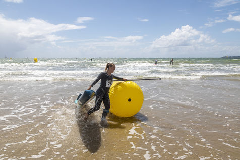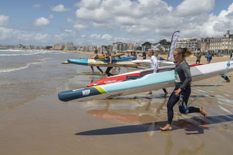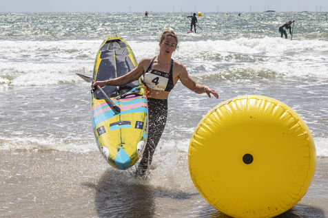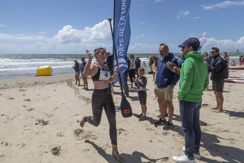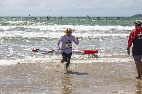 France, Pornichet, 2022-06-25. The best French paddle athletes met in Pornichet for the 5th edition of the Paddle Trophy. They participated in the Beach Race Elite, a technical race made very difficult by the weather, wind and wave conditions. Melanie Lafenetre, French long distance champion 2021, won 1st place, followed by Iona Rivet, double vice-champion of France in long distance and sprint, and Anais Guyomarch, champion of France Open ladies. The vice-champion of the world Amandine Chazot, was 4th. Photograpy by Caroline Paux / Hans Lucas.
