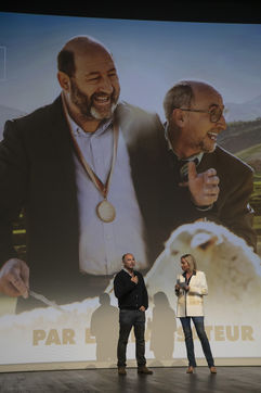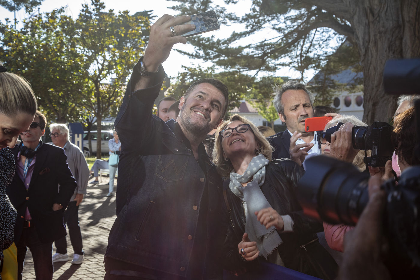France, La Baule, 2022-07-01. Every evening, the La Baule Film & Music Festival presents a film in competition or out of competition in the Atlantia Congress Hall. Thursday, it was "Citizen of Honor", in the presence of the director Mohamed Hamidi, the young singer Vanille Clerc, the director Nafsika Guerry-Karamaounas. Friday, screening of "Rumba la vie" by Franck Dubosc, in the presence of Tcheky Karyo, Dominique Desseigne, CEO of the Barrière Group, Arnaud Ducret, Pierre Menes, the film crew Petaouchnok, Edouard Deluc, Philippe Rebot, Sami Ameziane. Photography by Caroline Paux / Hans Lucas.
