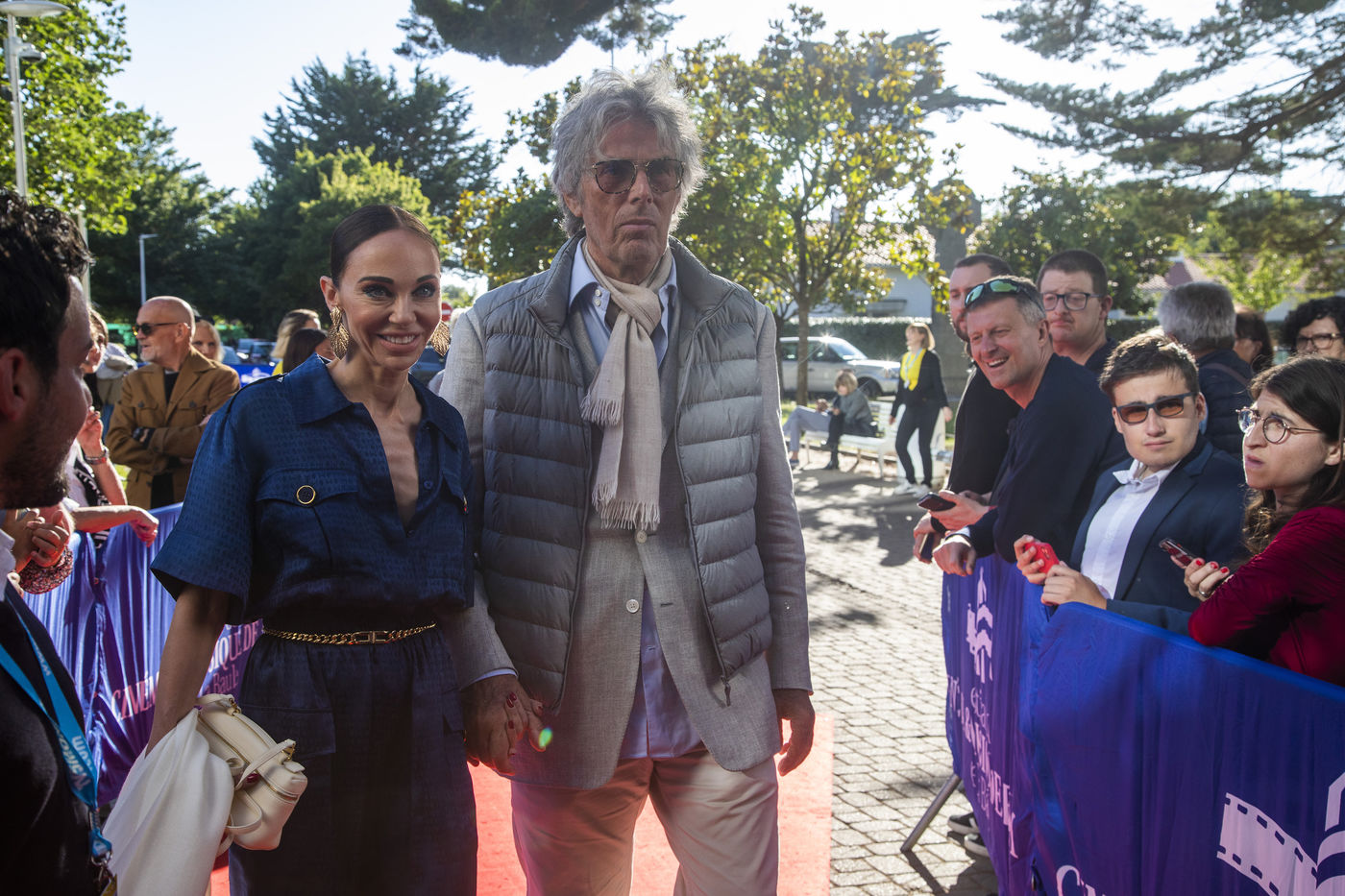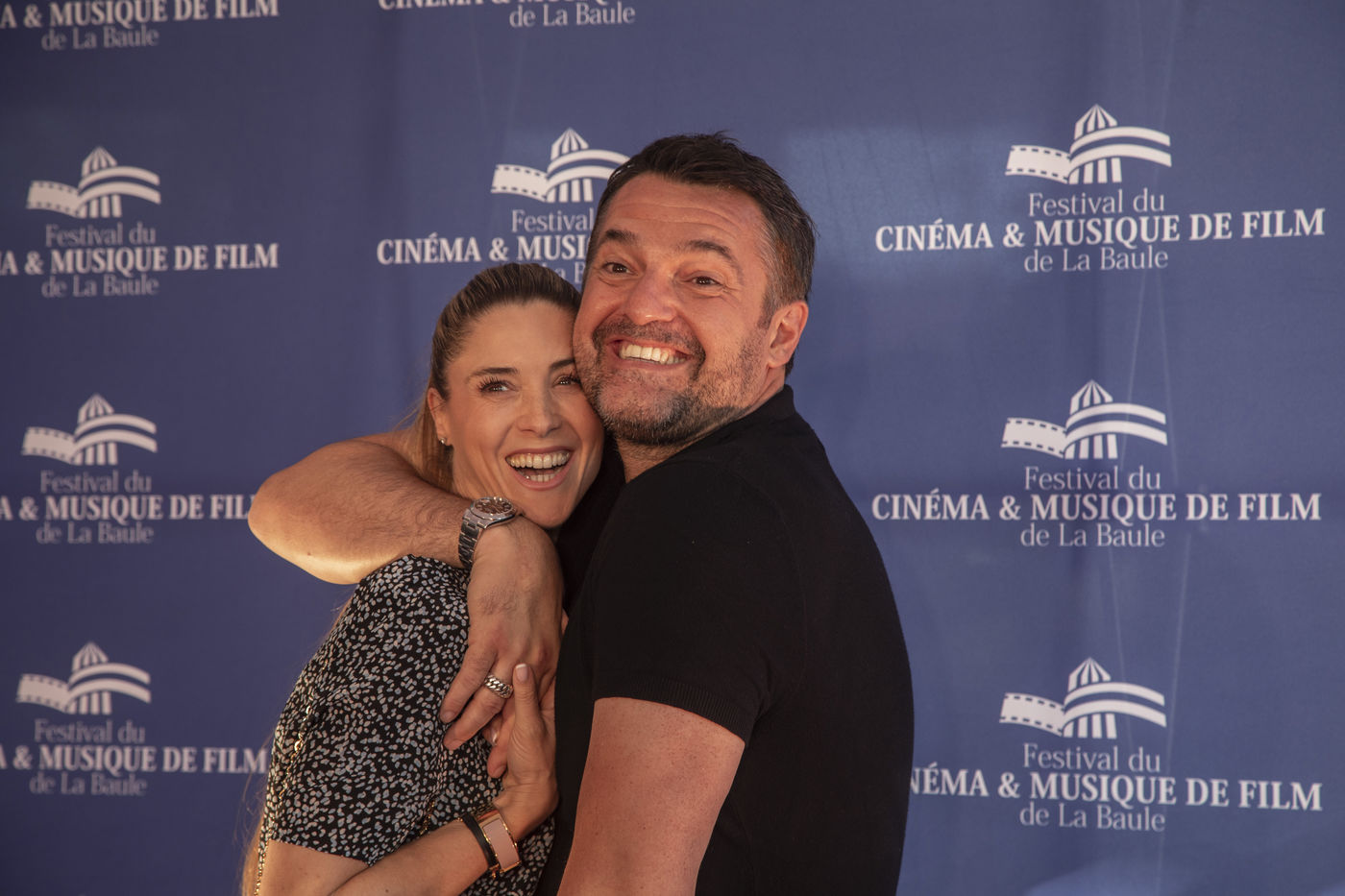 France, La Baule, 2022-07-01. Chaque soir, le Festival du cinéma & musique de film de La Baule présente un film en compétition ou hors compétition dans la salle des congrès Atlantia. Jeudi, c?était « Citoyen d?honneur », en présence du réalisateur Mohamed Hamidi, de la jeune chanteuse Vanille Clerc, de la réalisatrice Nafsika Guerry-Karamaounas. Vendredi, projection de « Rumba la vie » de Franck Dubosc, en présence de Tcheky Karyo, de Dominique Desseigne, pdg du Groupe Barrière, Arnaud Ducret, de Pierre Menes, de l?équipe du film Petaouchnok, Edouard Deluc, Philippe Rebot, Sami Ameziane. Photographie par Caroline Paux / Hans Lucas