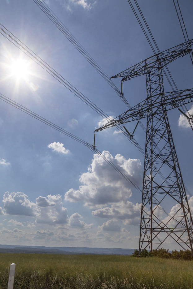 France, Cattenom, 2022-06-05. La centrale nucléaire de Cattenom, en Lorraine, est exploitée par Électricité de France (EDF), sur les bords de la Moselle. Elle dispose de quatre réacteurs nucléaires à eau pressurisée (REP) d une puissance de 1 300 mégawatts électriques chacun. Cattenom est la septième centrale au monde en puissance installée, et la deuxième centrale de France pour sa production d'Électricité. Les lignes a haute et très haute tension transportent l'électricité du centre de production de la centrale nucléaire vers les grandes agglomérations ou les gros industriels de la région lorraine. Photographie par Caroline Paux / Hans Lucas.