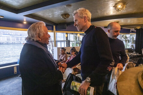 France, Paris, 2022/12/06. Denis Brogniart will be the patron of the 4th Edition of the French Riviera Garden Festival organized from March 25 to May 1, 2023. He was present, along with Jean Mus, international landscape designer and President of the Festival's technical committee, at the press conference given by the Comité Régional du Tourisme de la Cote d'Azur on a barge in Paris. Photography by Caroline Paux / Hans Lucas.