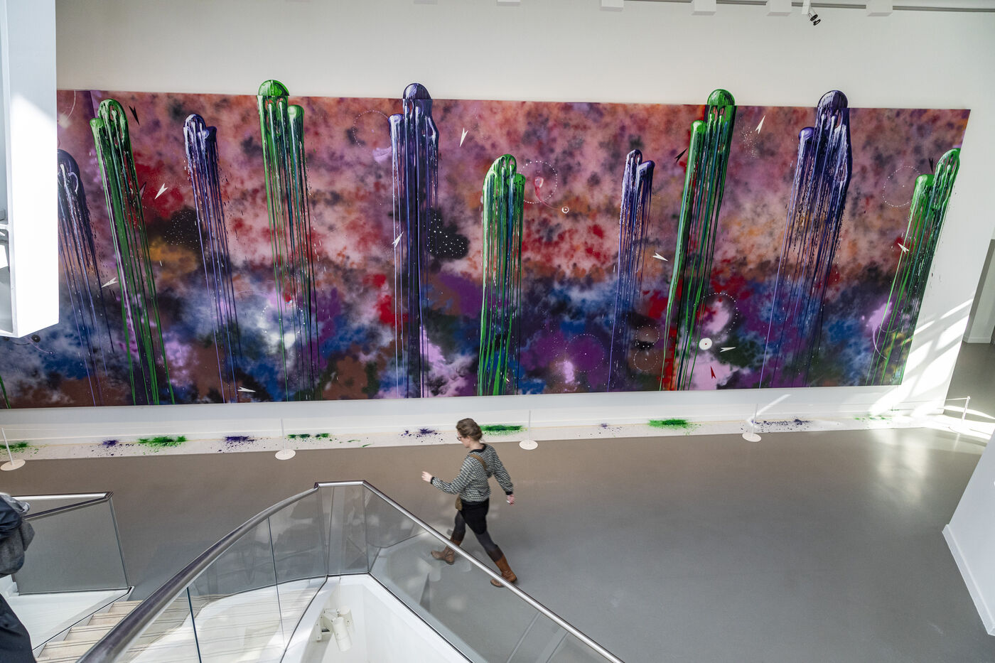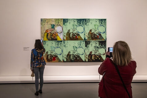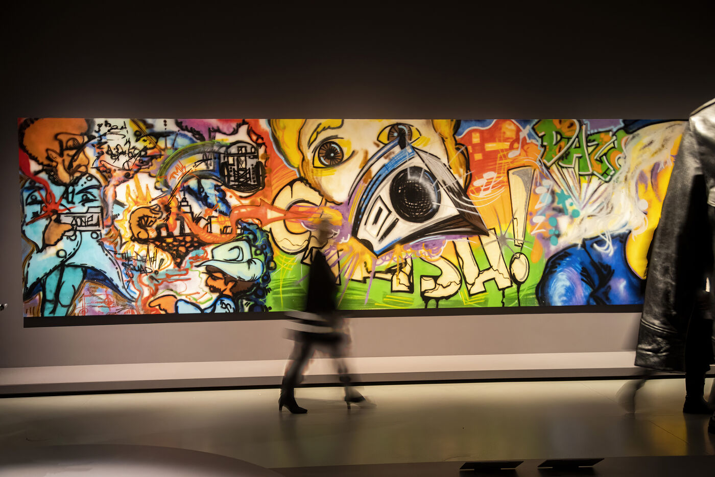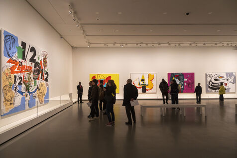 France, Paris, 2023-04-04. The Fondation Louis Vuitton presents from April 5 to August 28, 2023, the exhibition "Basquiat X Warhol, painting four hands". From 1984 to 1985, Jean-Michel Basquiat (1960-1988) and Andy Warhol (1928-1987) created 160 paintings together, including some of the greatest of their respective careers. This exhibition is the most important devoted to this singular work. It presents more than 300 works and documents, including 80 jointly signed paintings. Photography by Caroline Paux.