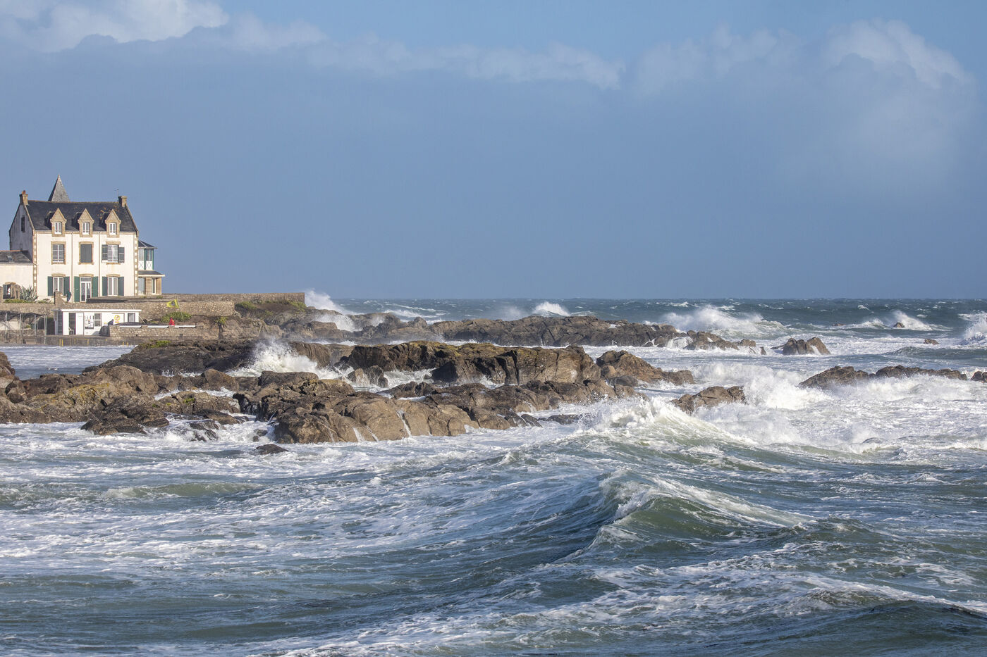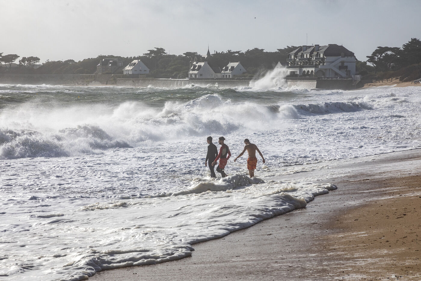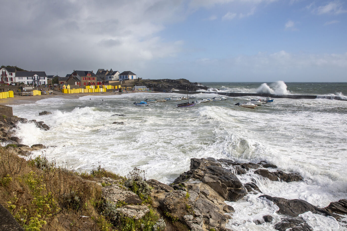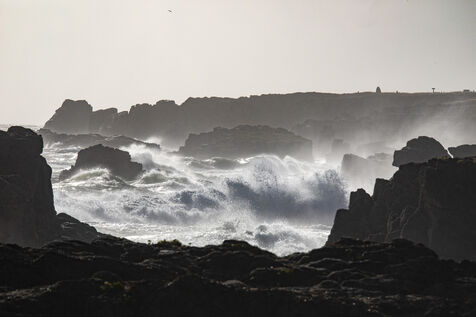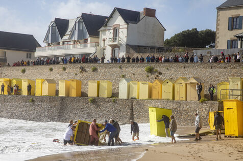 France, Batz-sur-Mer - 2023-08-03. Storm Patricia in northwestern France had repercussions in the Loire-Atlantique region, with very high swells and wind, particularly on the Côte sauvage from Batz-sur-Mer to Le Croisic. Photo Caroline Paux / Hans Lucas.